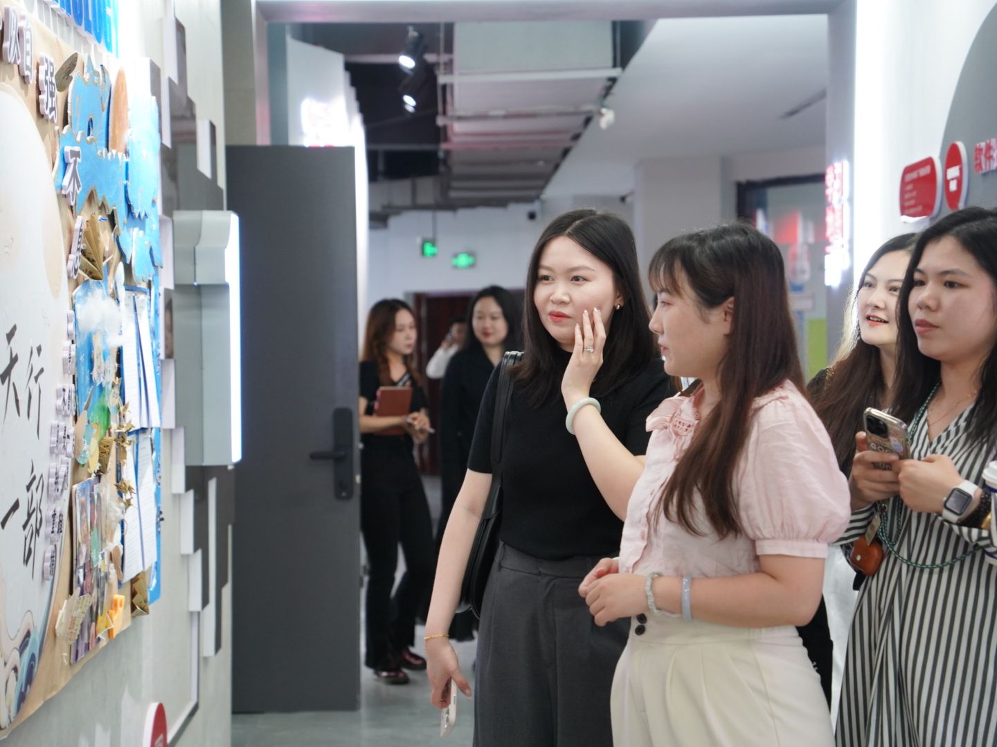 在科幻学院,代表团成员们被学生们对科幻的热爱和创意所感染。参观了中华传习所、声乐工坊等特色活动教室及作品展示区,深入了解了学生们在科幻创作方面的努力和成果。