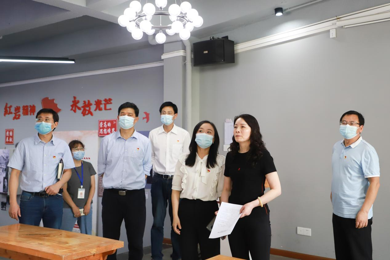 专家组、重邮党委常委、宣传部部长敬菊华前往了北山书院、淬炼商学院对我校重庆市级样板支部淬炼商学院学生支部进行验收。2020年11月和2022年3月,我校淬炼商学院学生党支部先后入选重庆市高校“双创”样板支部、“全国党建工作样板支部”培育创建单位,实现党建“双创”工作零的突破。专家组现场仔细查阅了创建材料,查看了阵地建设,并对我校样板支部创建工作给予极高肯定。