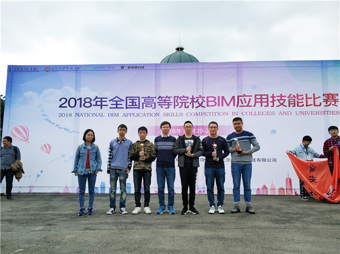 2018年10月19日-21日,2018年全国高等院校BIM应用技能大赛全国总决赛(本科组)在四川大学锦城学院举行。今年的BIM技能大赛由刘霖老师带队,由徐桂霄、刘霖、周梦娇指导的工程管理2015级学生王昂、彭舒、侯继涛团队参加BIM施工项目管理应用技能大赛,获得BIM施工项目管理应用技能团体一等奖,项目管理沙盘专项一等奖,BIM招投标专项一等奖,BIM施工组织设计专项一等奖;由张红、林毅、周梦娇指导的工程管理2015级学生祝翼哲、向建军、范晓斐团队参加BIM造价应用技能大赛,获得团体三等奖。