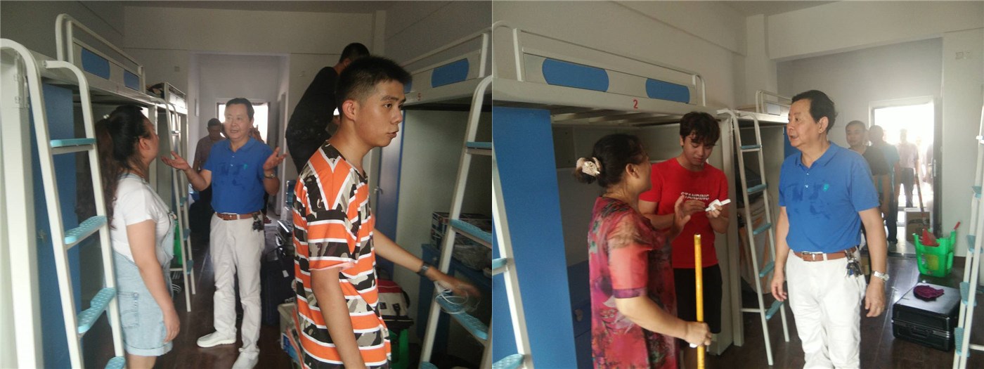 外国语言文学系和智能工程学院的师生陆续入住北校区书院。张德民一行深入书院学生宿舍,和正在收拾行李的新生及家长亲切交谈,询问他们来自哪里,是否适应学校环境,欢迎新同学加入移通大家庭,并感谢家长对移通学院的信任和支持。校领导来到书院各教学楼,查看教学设施是否齐备。