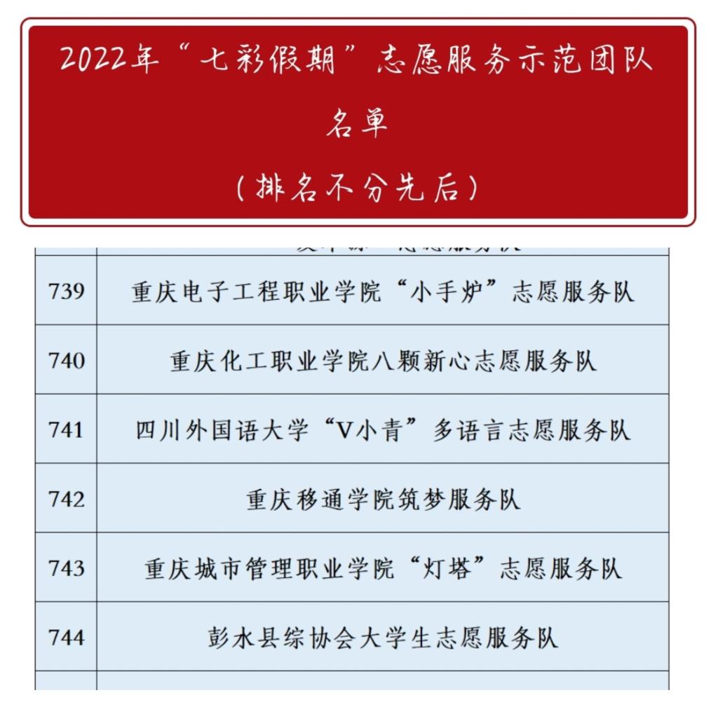 今年4月,为进一步加强对农村留守儿童、城市随迁子女等青少年群体的关心关爱,以实际行动迎接党的二十大胜利召开,团中央青年志愿者行动指导中心、中国青年志愿者协会秘书处面向全国遴选一批“七彩假期”志愿服务示范团队,我校筑梦服务队通过层层选拔、申报、专业评选等环节,在全国4500多支志愿服务队伍中脱颖而出,继2020年入选后再次成为“七彩假期”全国示范团队。