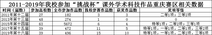 (历届“挑战杯”全国大学生课外学术科技作品竞赛重庆市赛区数据)