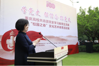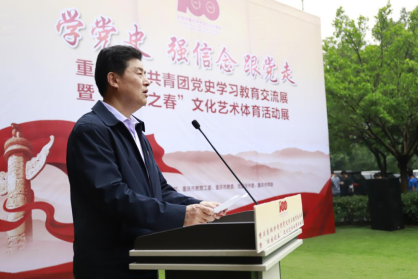 为深入开展“学党史、强信念、跟党走”学习教育,进一步营造学史明理、学史增信、学史崇德、学史力行的党史学习教育氛围,推动党史学习教育更添声色、更接地气。5月25日上午,由团市委、市学联主办、重庆移通学院承办的重庆高校共青团党史学习教育交流展暨“校园之春”文化艺术体育活动展在我校北校区爱莲书院正式启动,团市委副书记黄永宜、市委宣传部宣教处一级调研员卞明高、重庆移通学院党委书记苏开荣、合川区团区委副书记汤红光、中国新商科教育集团副总裁王征、重庆移通学院副校长周伟、重庆移通学院副校长李文豹,全市65所高校团委负责人以及青年学生代表共计300余人参与。