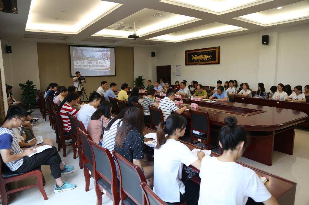 7月11日,区教委、区经济信息委、信息安全城管委会、合阳城街道相关负责人来到我校,开展“领导干部上讲台”思想政治教育专题活动暨调研座谈会。李茂军、张德民、周伟等校领导陪同调研并出席座谈会,60余名师生代表参加座谈会。党委书记苏开荣教授主持会议。
