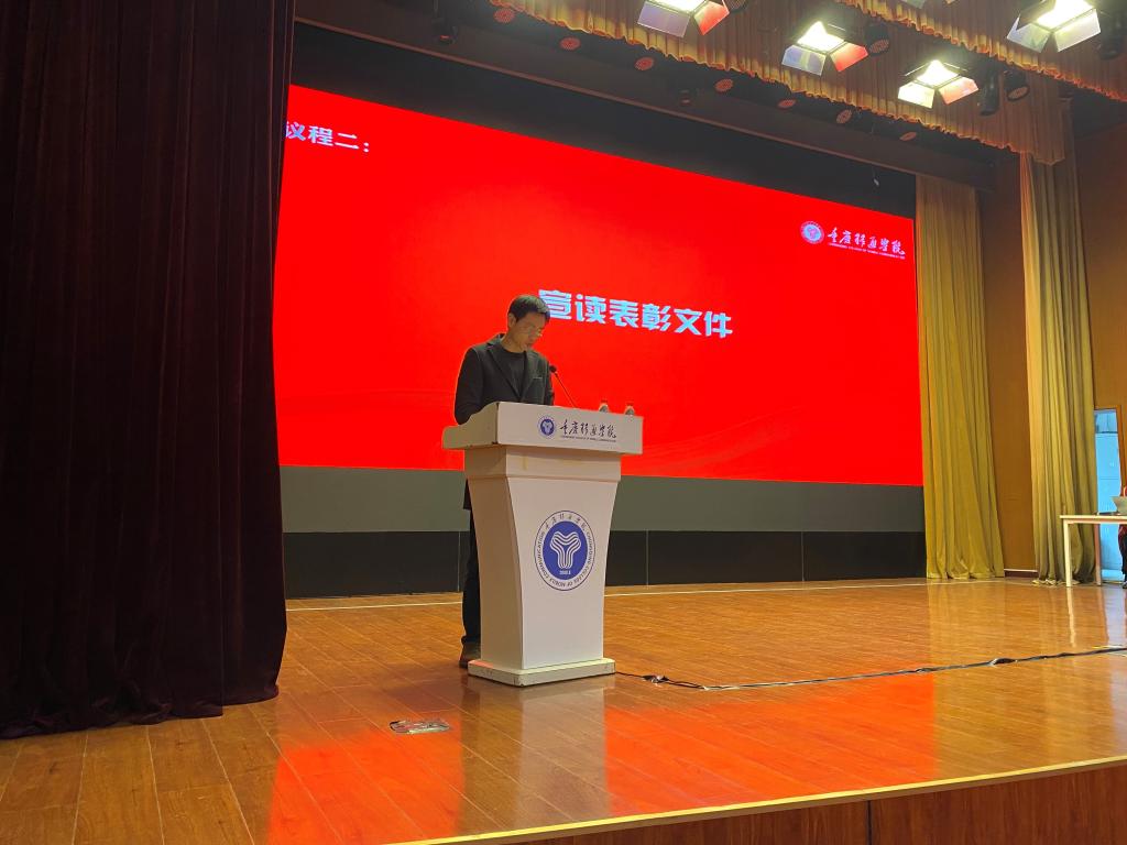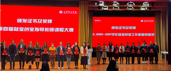 副校长、党委副书记周伟宣读了第四届就业创业指导教师课程大赛获奖名单和2020—2021学年就业创业相关工作先进集体和个人两个文件。