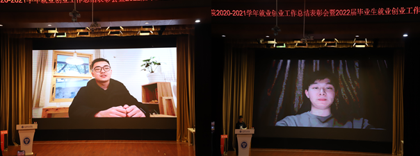 由于疫情防控,大数据与软件学院2021届毕业生蒋元皓和中德应用技术学院2021届毕业生李承泰作为考研杰出奖获奖代表以视频形式进行分享。