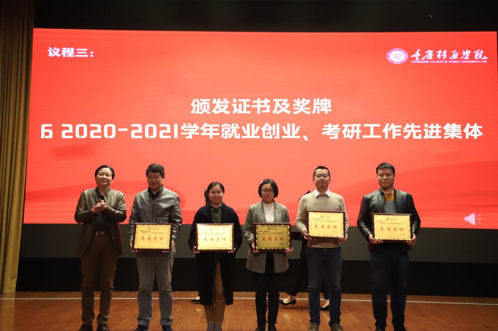 为进一步总结2020-2021学年就业创业工作,全面推进2022届毕业生就业创业工作。3月9日14:30,我校2020—2021学年就业创业工作总结表彰会暨2022届毕业生就业创业工作推进会在合川校区下里巴人剧场顺利举行。学校校、院两级就业创业工作领导小组成员、就业创业工作办公室成员、就业创业工作网格成员单位、部分辅导员代表、就创中心全体教师现场参加,綦江校区相关人员通过线上方式参加。本次会议由校长助理陈仲华主持。