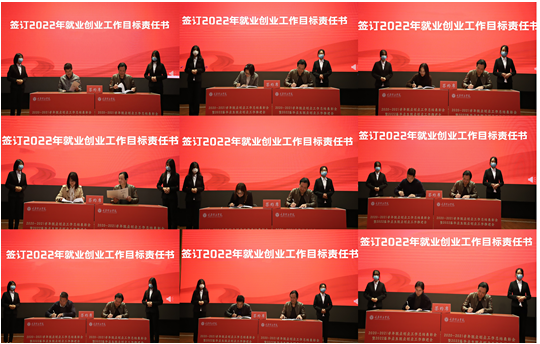 随后,各二级学院就业创业工作领导小组组长与学校就业工作领导小组组长张德民校长签订《2022年就业创业工作目标责任书》。