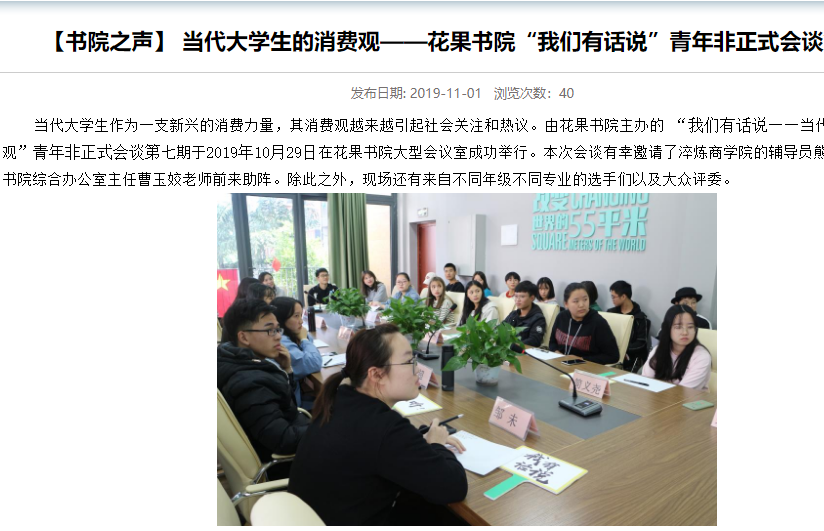 要想成为中小企业的管理者、领导者,仅仅拥有充足的知识和技能准备是远远不够的。冰山理论中提到,影响人的成功的要素除了浮在水面上看到的那些部分,更重要的是在冰山下的价值观、态度、习惯等不可见的内容。我国中小企业的管理者所面临的问题更加复杂,要生存并发展,需要更多的坚韧力、更强的判断力、更符合组织发展的协调力,更具有社会担当的企业家精神以及批判性精神,以及敢为人先的创新意识。由此,我们的新商科绝不是在书本理论上的新商科,也不是居于课堂的新商科。我们的新商科就是要充分地与完满、通识相结合,打破学科的边界,学习的边界、力求达到知行合一,培养完满的新时代商科人才。在2019-2020第一学期,我们的新商科就与完满、通识教育进行了大量的融合尝试。将商科教学与完满教育的书院、社团等项目结合起来,使得学生能够及时将学到的商学知识运用到日常生活中去。例如,商学院举行一年一度的“金融职场节”,涉及人力资源管理、金融知识竞赛、营销大赛等等,花果书院和淬炼商学院–国际商学院联合举办的“当代大学生的消费观”青年非正式会谈,就是围绕当代大学生的消费观、消费心理等相关问题展开了热烈讨论,使同学将从课本上习得的商学知识运用到日常的个人财务管理中去,指导个人理财。在重庆市教育委员会主办的第九届全国大学生电子商务 “创新、创意及创业”挑战赛重庆赛区选拔赛上,淬炼商学院–国际商学院杨华琼、李晓敏老师带领学生在“畅游PS休闲馆”创业项目上获得单项创业奖,重庆市一等奖殊荣。在淬炼商学院–国际商学院举办的第四期商业读书会上,师生们共同开展了主题为“人文视角下的商业管理”的商业读书会。从功利和审美的角度出发,将人文与商业结合起来,挖掘商业的本质是人与人之间的价值交换,在商业活动中要顺应人性,尊重人性,运用人性,满足人在各个阶段的需求,最终达到商业追求的功劳主义也就是利益最大化,在这个过程中需要我们有较高的艺术鉴赏能力,对人性的洞察,对市场的了解。许多同学都表示受益匪浅。同时,我们的新商科老师们也积极投身到各书院的学业导师活动中,刘久江老师入驻别都书院,开展个人职业生涯规划指导的活动。牟棉老师在汇江书院与同学们进行面对面的交流访谈。这种方式让我们的老师能够近距离接触同学,充分了解同学们在商科以及学业方面的需求和困惑,有效地为他们排忧解难,指点迷津。通过多方的合作,完满、通识下的新商科也越来越具有独特的光彩,无形之中我们所拥有的将是不可替代的且难以模仿的新商科软实力。