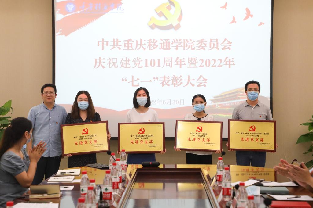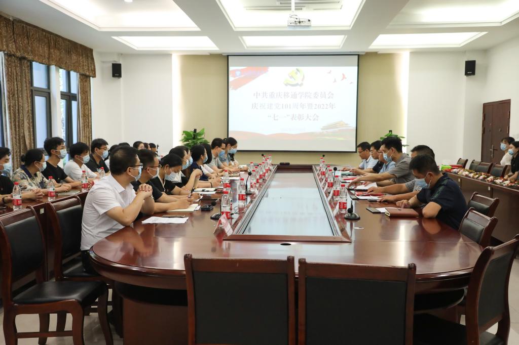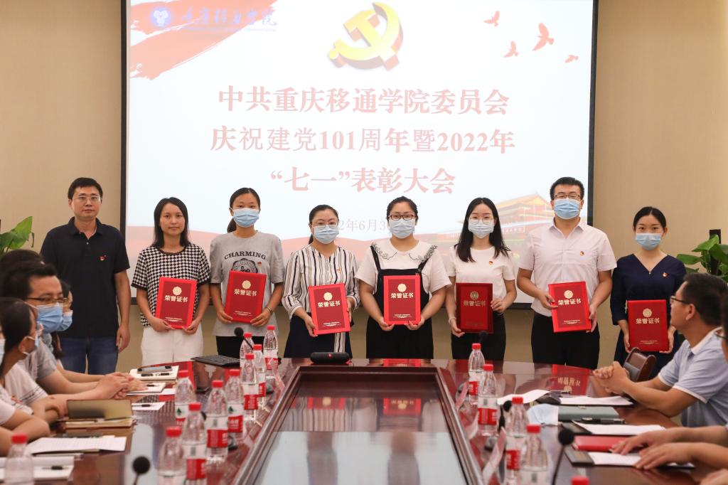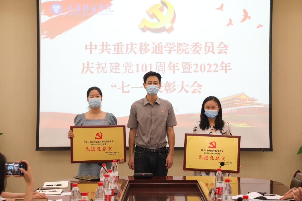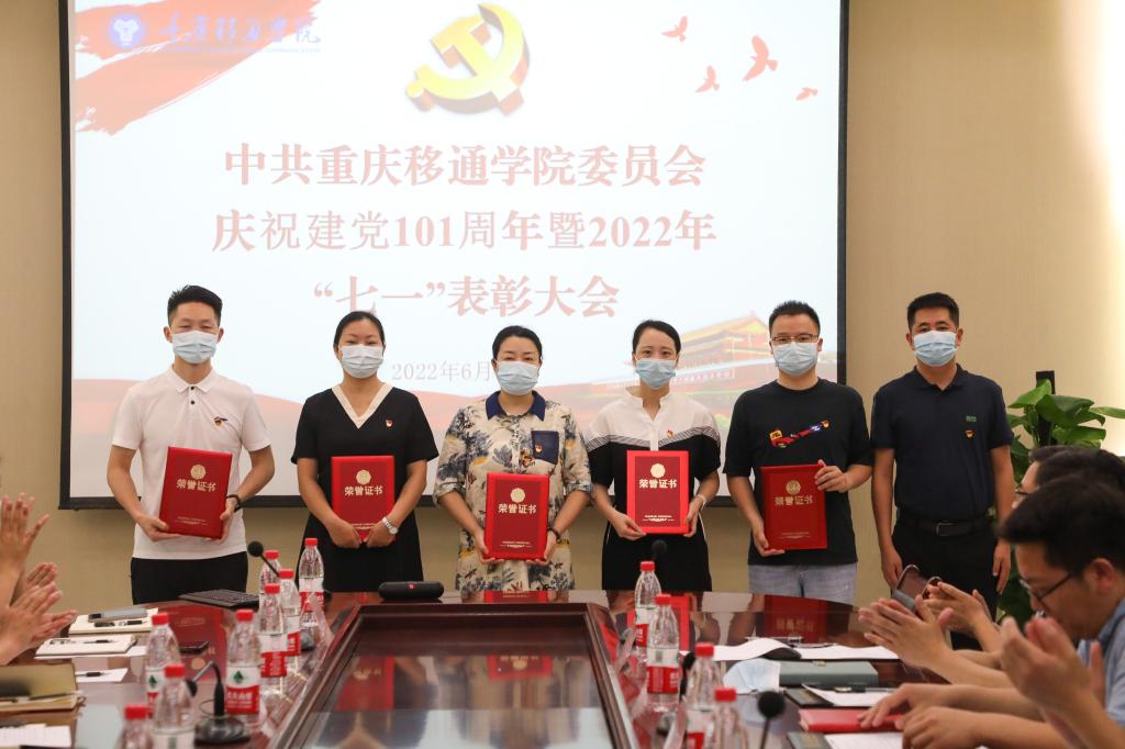 党委委员、院长助理尹浩亮同志宣读《中共重庆移通学院委员会关于表彰2022年先进党组织、优秀党务工作者和优秀共产党员的决定》。校长助理张平、陈仲华同志为优秀共产党员、优秀党务工作者代表颁奖,党委委员,副校长王永刚同志为先进基层党支部颁奖,党委副书记、副校长周伟同志为先进基层党总支颁奖。