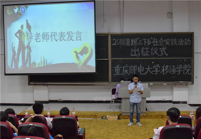 智能工程学院辅导员杨龙奉老师在作为指导老师代表发言时,提到暑期“三下乡”社会实践是当代青年大学生运用知识、施展才华、磨练意志、实践成才的大课堂,是广大青年大学生传播文明,弘扬科学精神的重要途径,是顺应时代需求、有利学生成才,深受人民群众和青年学生欢迎的教育服务活动。