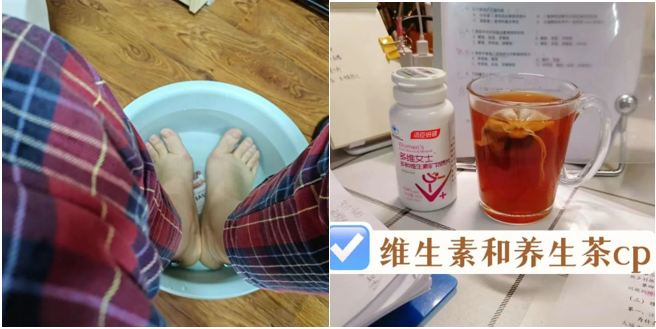 不喜动的同学也有自己的一套秘籍,养生茶、维生素、泡脚桶……精致的当代大学生们在养生这件事上大有“造诣”。