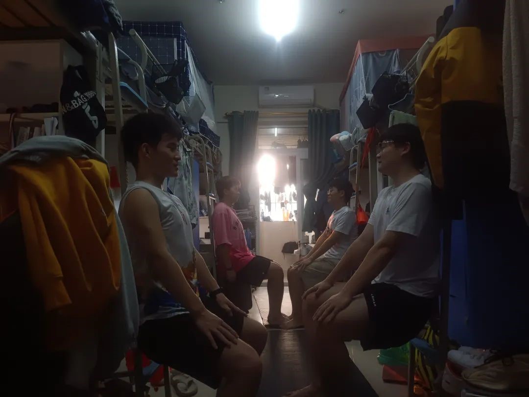 也有不少同学自发在寝室花式健身,目光所及之处皆可作为锻炼器械。