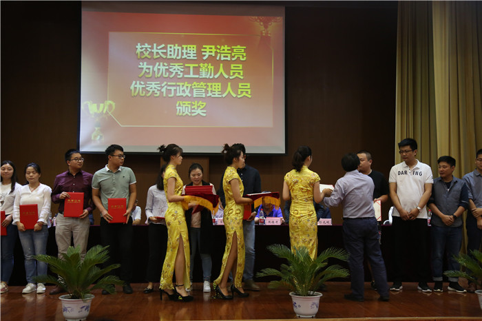 会上,校长助理刘枚宣读《重庆邮电大学移通学院关于公布2018年青年教师教学竞赛获奖名单的通知》,尹邦满副校长为获奖教师颁奖。翔美教育集团人力资源总监彭光明宣读《重庆邮电大学移通学院关于表彰2017-2018学年优秀教职工的决定》,对艺术传媒学院龚晓雪、中德应用技术学院侯宇晶等39名获得远景优秀教师百万奖励基金的老师、35名教学优秀奖获奖教师、24名优秀行政管理人员、6名优秀管理干部、34名完满教育先进个人、2名双体系卓越人才教育基地优秀教师和2名优秀工勤人员予以表彰。出席表彰大会的校领导为受表彰的教职员工颁发荣誉证书和奖金。