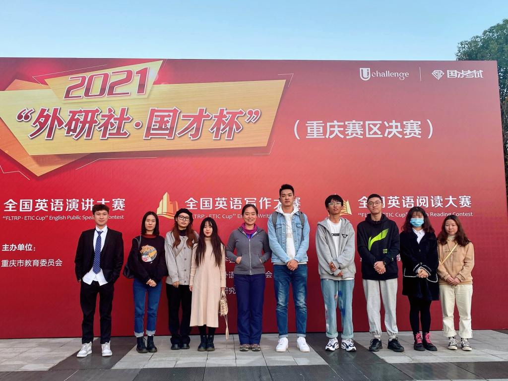 近日,第31届大学生英语演讲、写作、阅读比赛暨2021年“外研社·国才杯”全国英语演讲、写作、阅读大赛重庆赛区比赛在重庆邮电大学举行。经过竞赛场上的激烈角逐,我校外国语学院10名同学在邹嘉老师带队参赛,分获二等奖2名,三等奖8名。