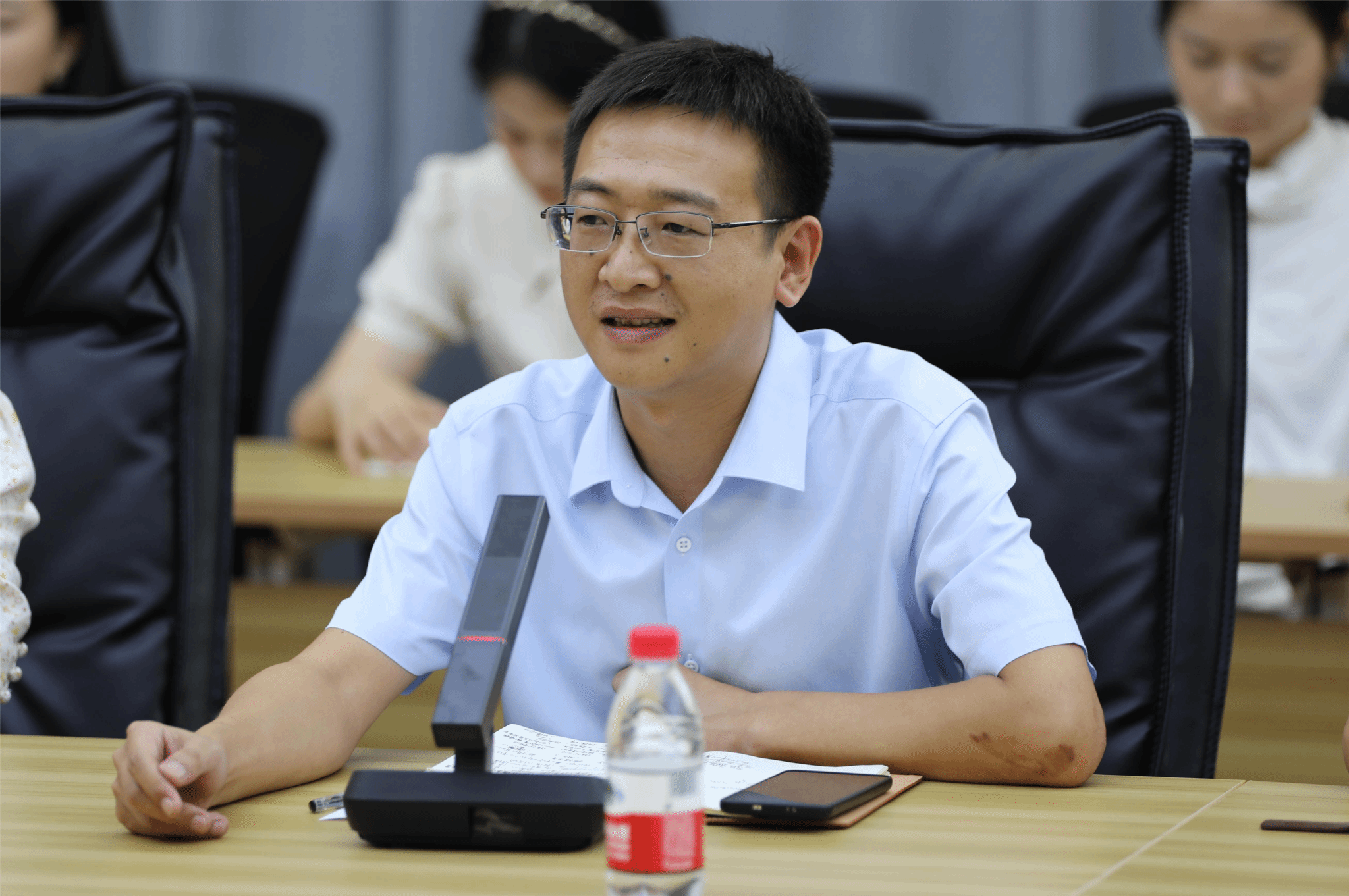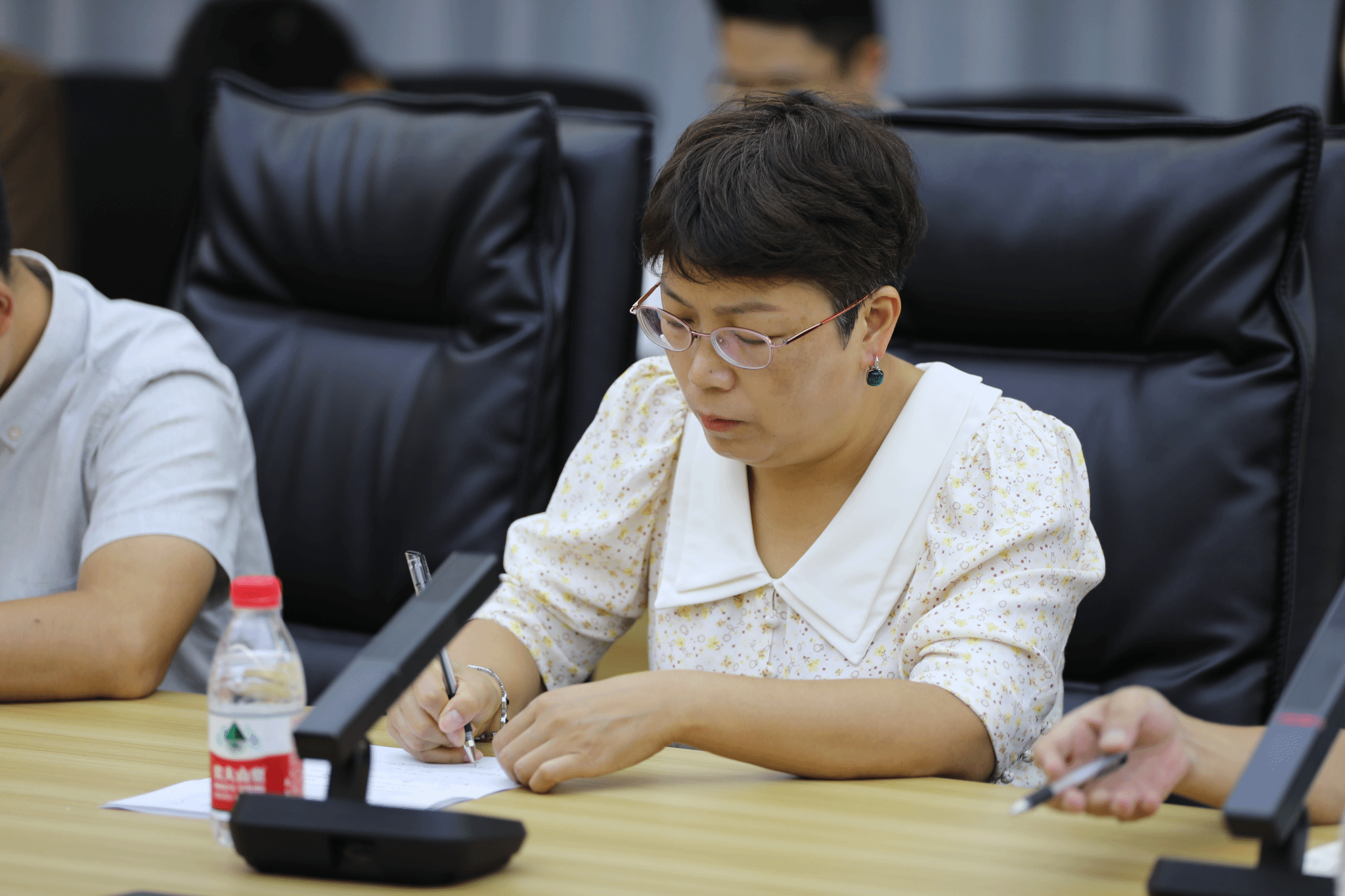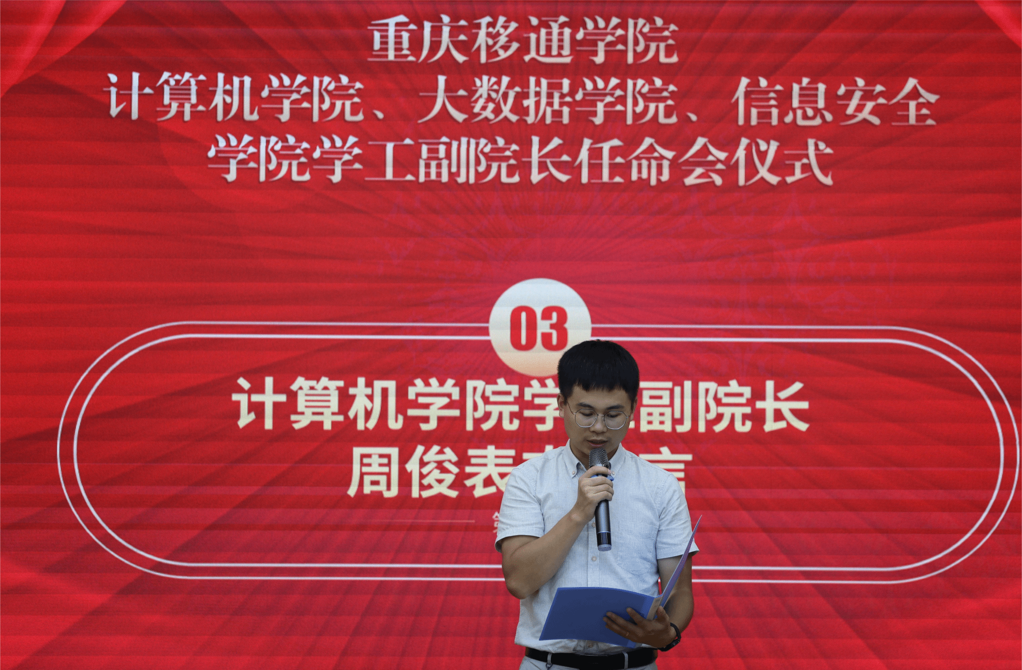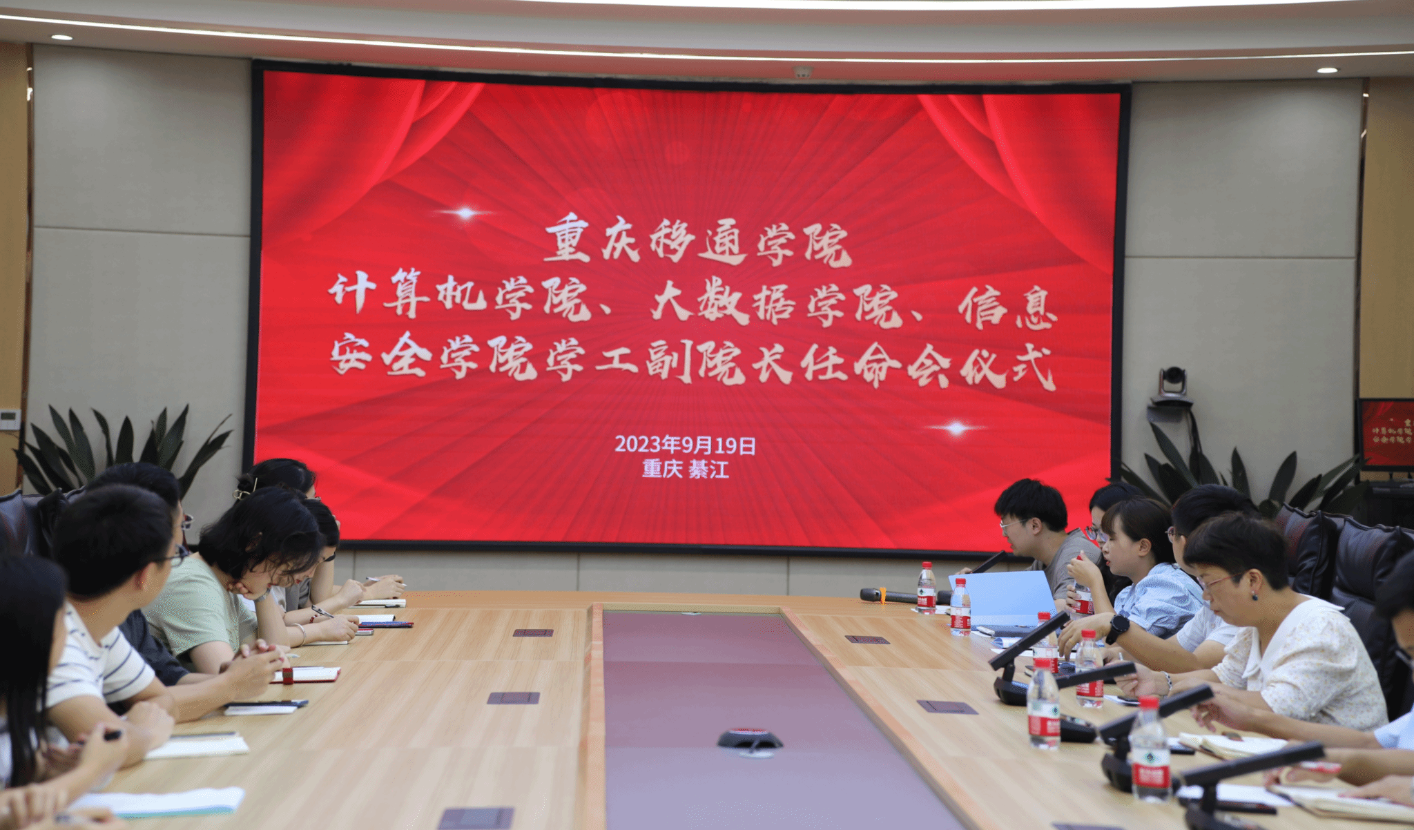 会议伊始,人力资源处副科长滕宇宣读文件,任命阙小梅任大数据学院学工副院长,周俊任计算机学院学工副院长,尹金维任信息安全学院学工副院长。
