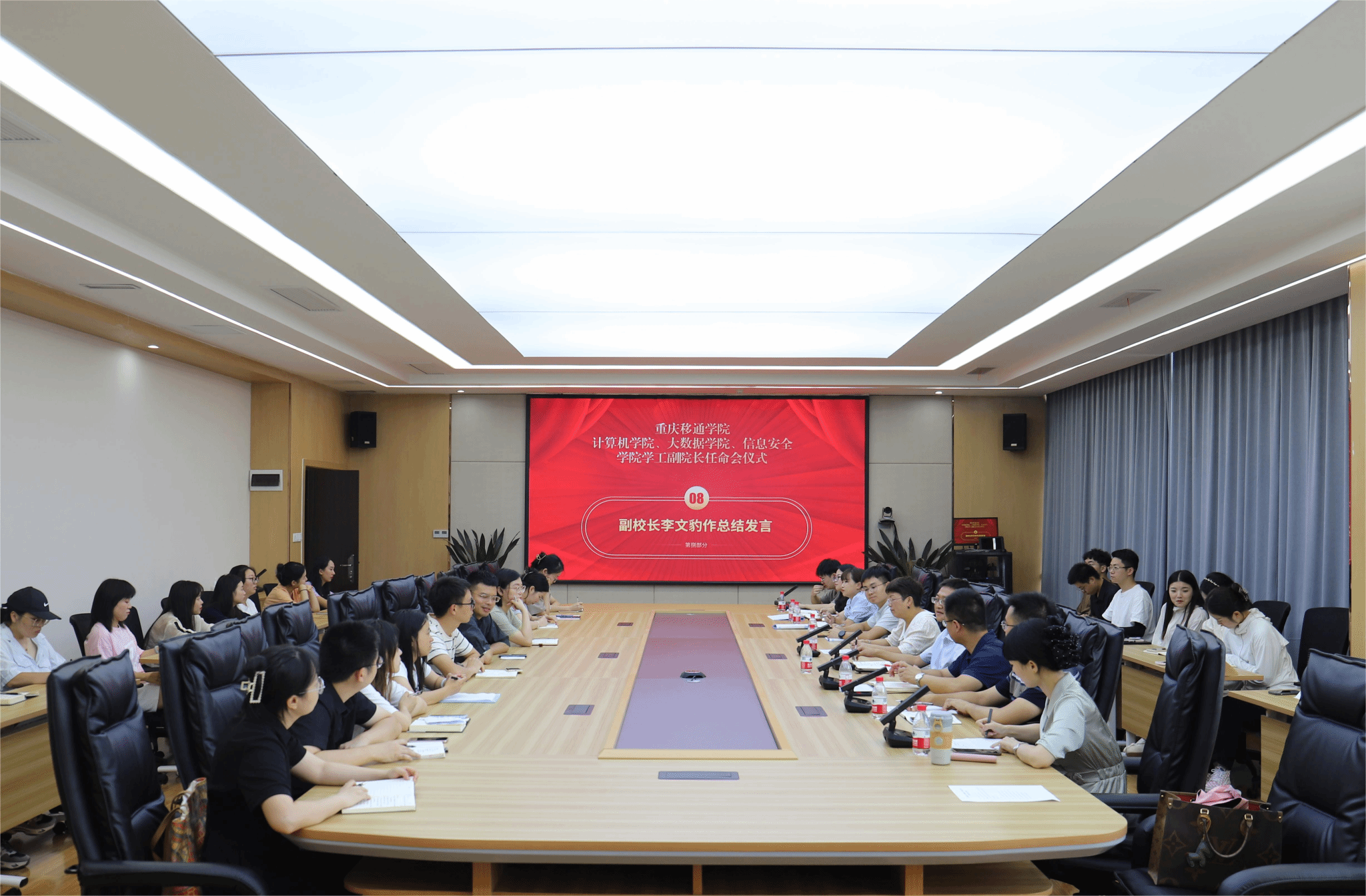 9月19日下午,我校在图书馆第一会议室召开计算机学院、大数据学院、信息安全学院学工副院长任命会议。副校长李文豹、校长助理梁少锋、学生处副处长唐尚静、计算机学院副院长向碧群、信息安全学院副院长王宁以及三个学院全体辅导员参加会议,会议由人力资源处副科长滕宇主持。