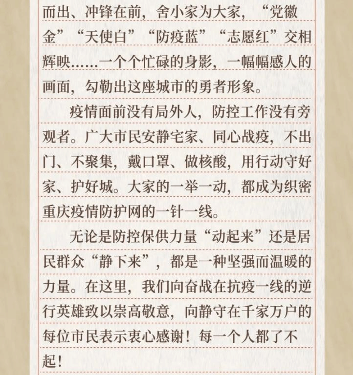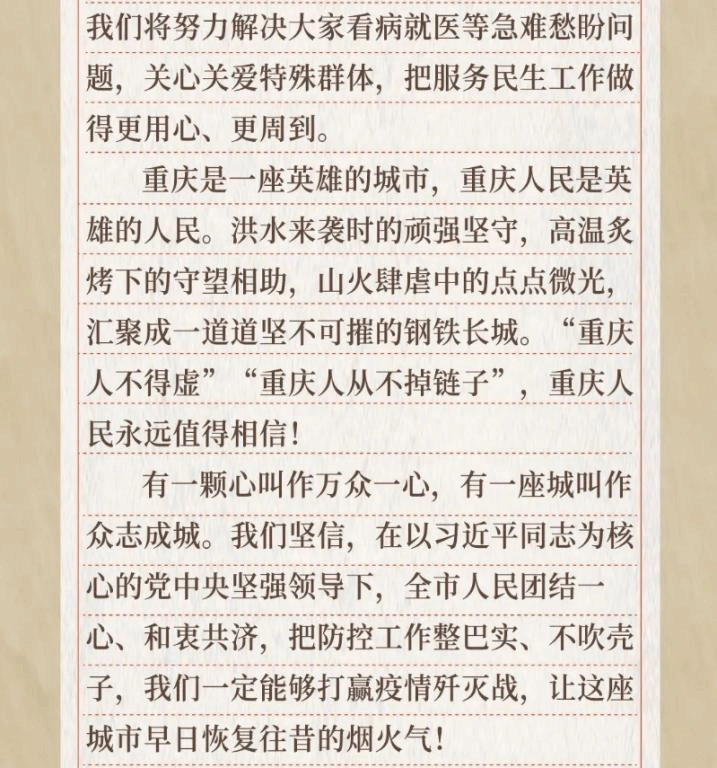 致重庆市民的一封信