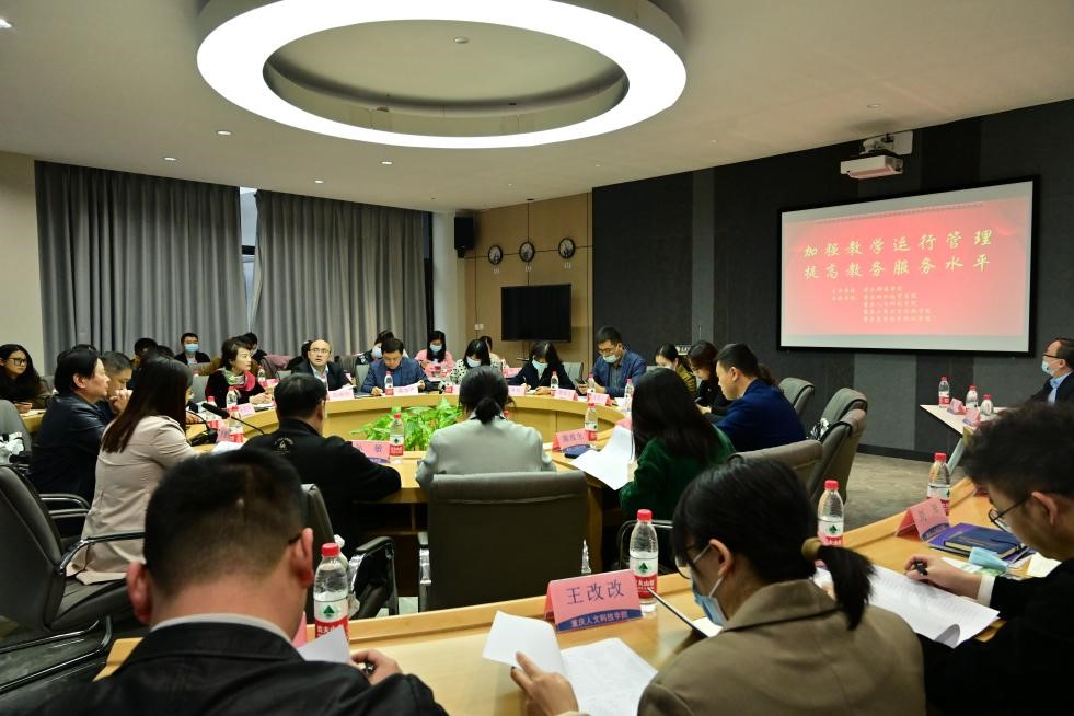 会议在我校南湖书院圆桌会议厅举行,会议围绕“加强教学运行管理,提高教务服务水平”主题展开交流。我校以教学管理工作为突破口,搭建校际交流沟通的平台,围绕民办高校教育教学工作开展交流,共同探讨新形势下人才培养的新范式、新理念。重庆人文科技学院孙敏副校长、重庆对外经贸学院杜斗恒副校长、重庆工商大学派斯学院陈勇阳副校长应邀参加了会议。