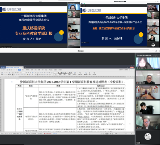 副院长范保珠从綦江校区新商科推进方向、推进中存在的问题、计划及建议三个方面进行汇报。他谈到,綦江校区作为新校区,尽管开始面临很多困难,但通过老师们的努力,新商科教育得到有效推进,全校商科课程教学全面铺开,“商科+”的新商科教育模式正常推进。现阶段,綦江校区商科教育存在教师缺少规划、课程推进不够完善、缺少骨干科教师、教学模式单一等问题。后期,学院会持续跟进新商科教育工作,计划与书院制紧密融合,加深校级合作;通过组织交流会专题会,进一步深入学习和理解集团的各类理念和精神;初步建设好新商科体验中心,促进新商科的建设与发展,提升新商科的体验感及效果。