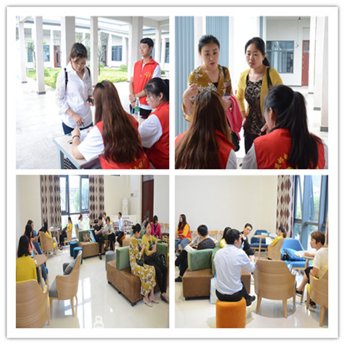 5月24日上午八点,梅若书院门口,工作人员早已等候在现场准备迎接到达的家长。由于行者公园位置在校园的最北边,志愿者们充当起向导,引导家长到达签到处。随着时间的推移,越来越多的家长到达精心装扮的休息室。签到期间,辅导员也来到现场,为家长答疑解惑,进行零距离交流。许多志愿者加入其中,为家长介绍学院特色,发展方向和接下来的行程。