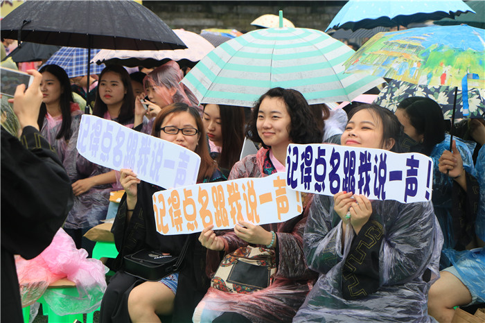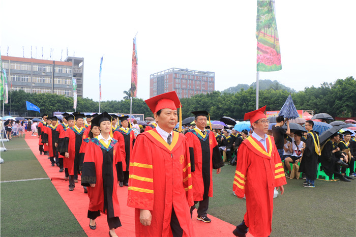 全体毕业生和全体校领导,校学位委员会全体委员以及相关职能部门负责人、教师代表、校友代表、家长观礼团按照预定时间,聚集到运动场,拥风入怀,冒雨见证这一庄严而神圣的时刻。典礼由副院长王征主持。