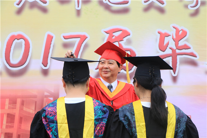 “今天,我们齐聚一堂,满怀荣耀与希望,今天,我们讴歌未来,展望光辉与梦想,共同庆祝2017届同学们顺利完成学业,即将翻开人生崭新的篇章。”院长张德民教授用亲切、幽默、睿智的语言,在毕业典礼上发表了题为《回首大学时光,在梦想的道路上砥砺前行》的致辞,送给全体毕业生。