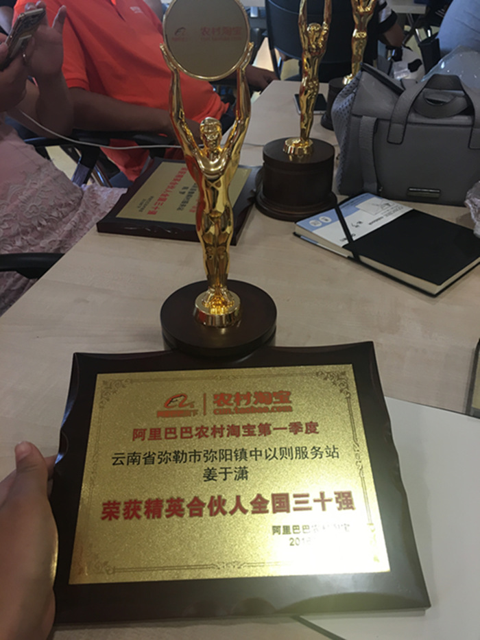 姜于潇,云南弥勒一位村淘合伙人,毕业于我校2012级管理工程系工程管理专业。2016年4月,她加入村淘,在2个月后的“618大促”活动中成为全国GMV突破500万第一人,并在全国村淘合伙人百万英雄排行榜中排名第六。活动当天,她所在的中以则村淘服务站共卖了20000袋共计500万元的水泥。成为合伙人后她与五菱宏光4s店联系并合作,至今,她共卖出了6辆五菱宏光S车型的面包车。