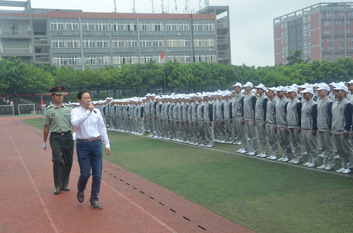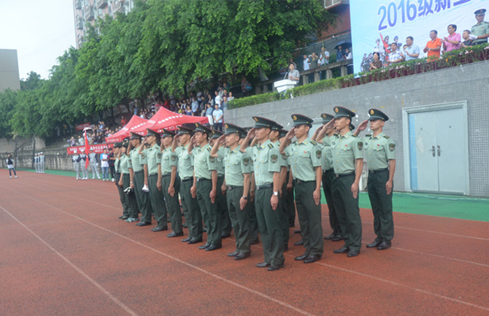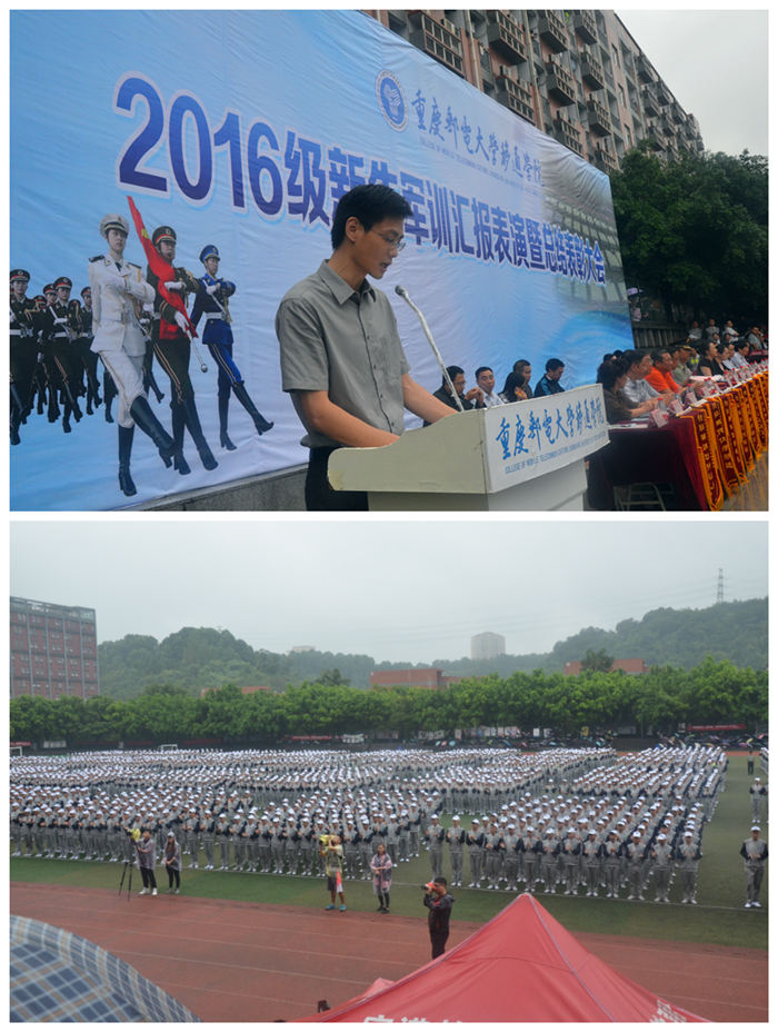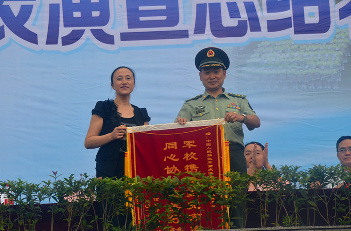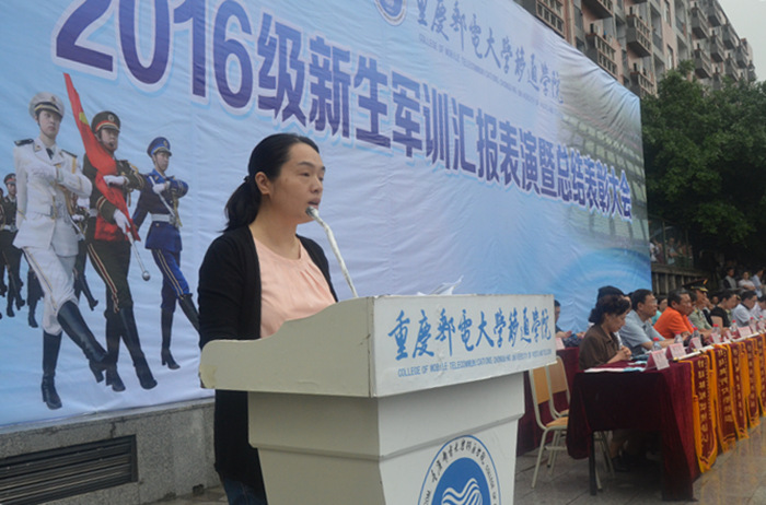 中国人民解放军重庆通信学院学员旅副政委王建宏上校希望所有参训的2016级新同学,始终铭记军训收获的坚毅与不屈,发扬军训中的优良作风,刻苦努力,顽强拼搏,为自己的青春无悔,为中华民族的伟大复兴而努力奋斗。重庆翔美教育集团CEO李茂军女士,代表学院向重庆通信学院承训教官赠送锦旗,感谢他们为圆满完成新生军训做出的突出贡献和付出的辛勤劳动。