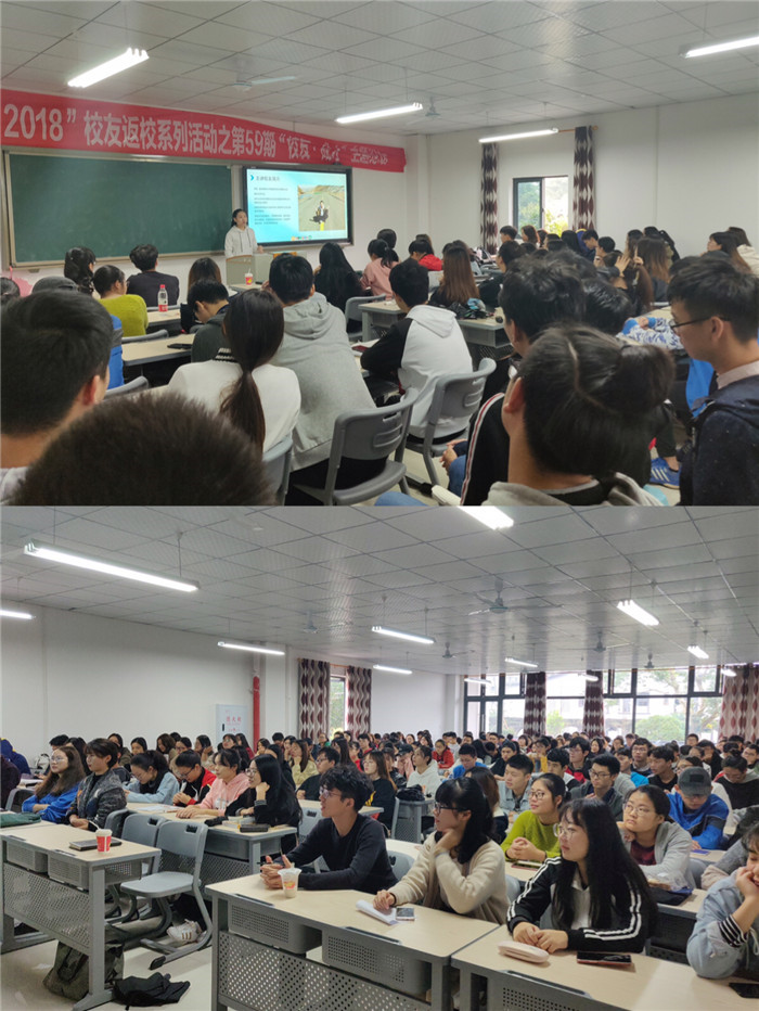 1.10月25日13:30,我校在竹逸201举办了“值年·2018”校友返校系列活动之第59期 “校友•成才”主题论坛。本次论坛邀请到远景学院2014级通信工程专业,现任北京神州绿盟信息安全科技股份有限公司网络安全工程师冉银校友为在校学生答疑解惑。