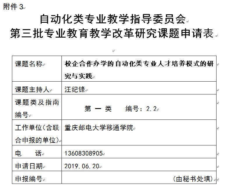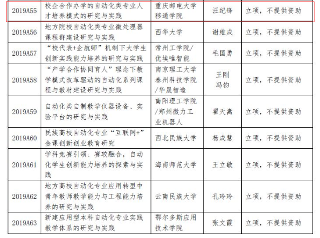 1近期,我校智能工程学院荣誉院长汪纪锋教授主持申报的《校企合作办学的自动化类专业人才培养模式的研究与实践》荣获教育部高等学校自动化类专业教学指导委员会教改项目立项。一同获批的还有清华大学、哈尔滨工业大学、浙江大学、华中科技大学等知名高校的教改项目,其中重庆市获批的项目只有三项:重庆科技学院1项、重庆科技学院/重庆工程学院(联合申报)1项、重庆邮电大学移通学院1项。此次项目能成功获批,表明我校智能工程学院在自动化类专业建设、教学改革等方面的探索,得到教育部自动化类专业教学指导委员会及全国自动化领域专家认可。