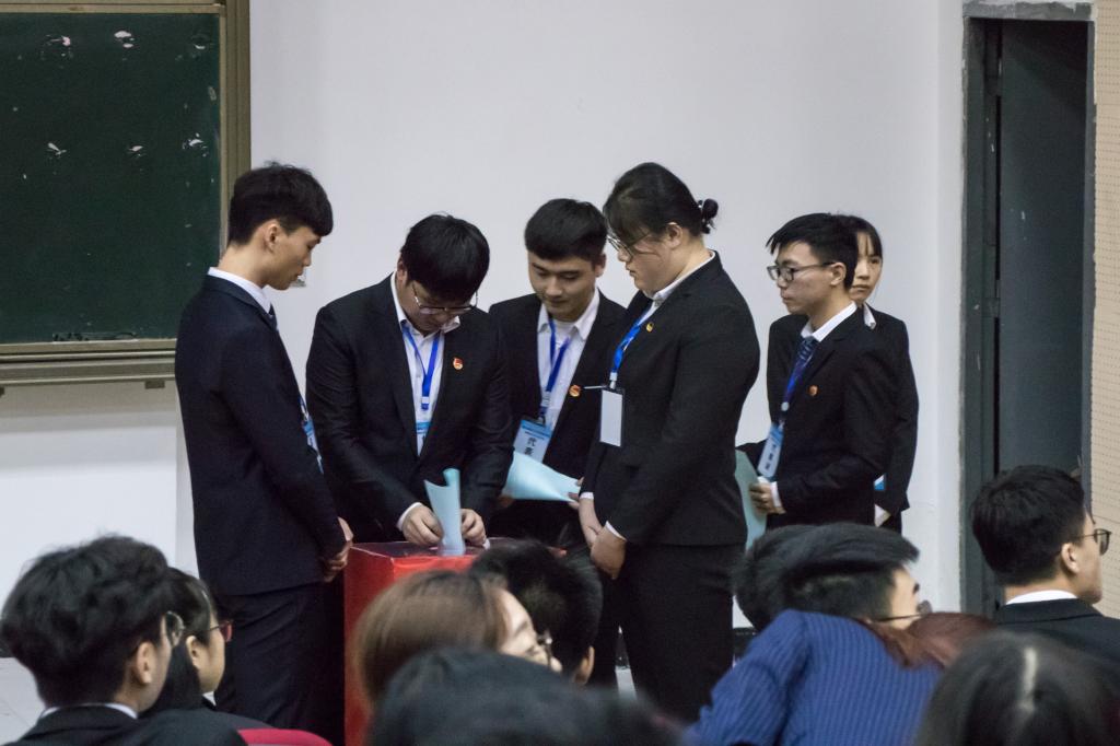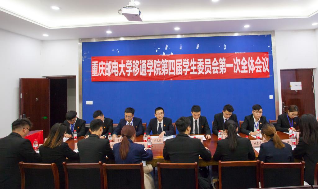 下午16:50,重庆邮电大学移通学院第四届学生委员会第一次全体会议在行政楼417会议室召开,新当选17名委员在本次会议中民主选举李凉、彭健、曾昱锋为新一任学生会主席团成员。