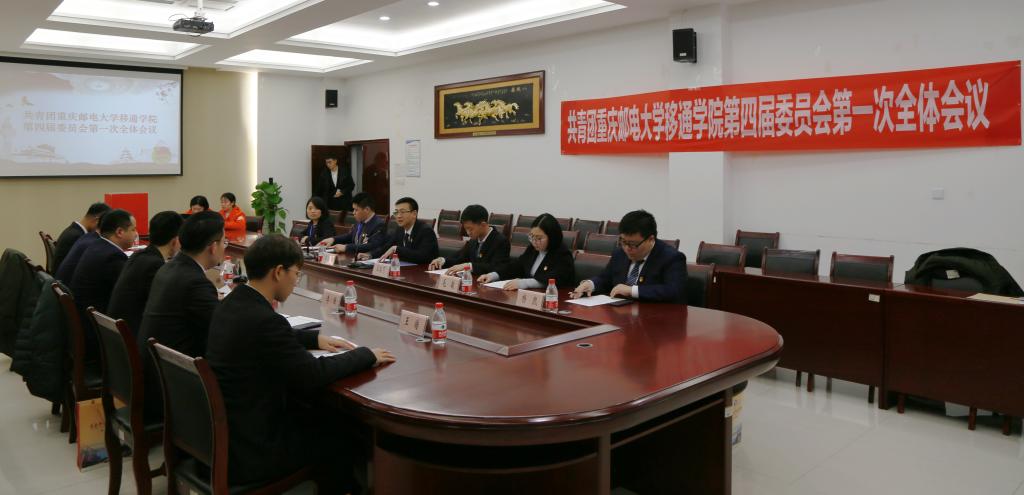 下午15:30,共青团重庆邮电大学移通学院第四届委员会第一次全体会议在行政楼107会议室召开,新当选15名委员在本次会议中民主选举李文豹、王韬可为新一任团委班子成员。