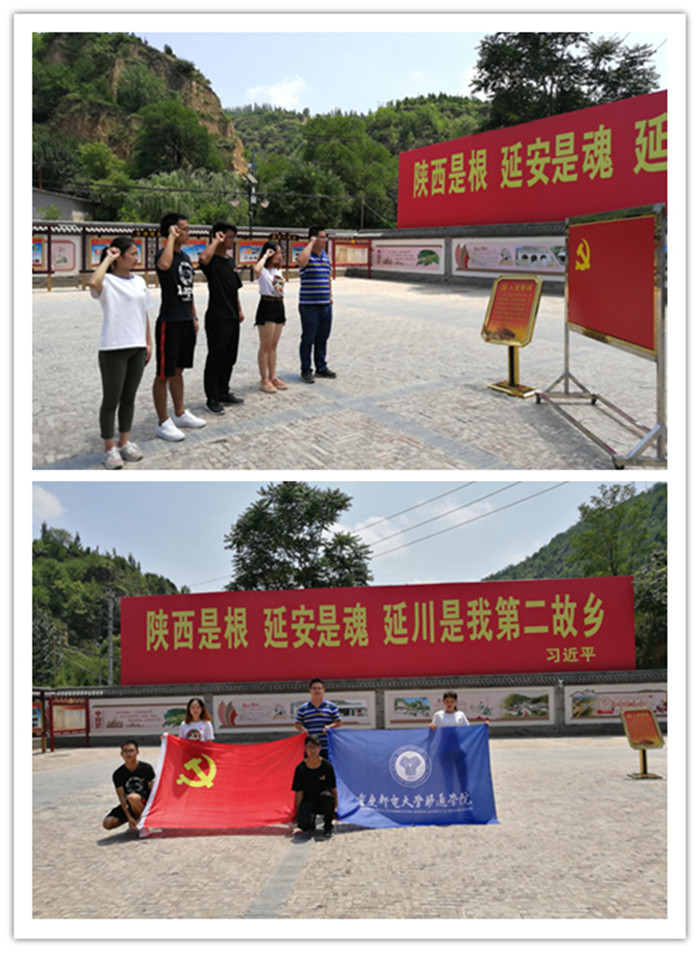 在“陕西是根,延安是魂,延川是我第二故乡” 鲜红的巨大展板前,先锋队全体成员攥紧右拳,面朝鲜红的党旗,重温入党诤诤誓言。师生一行5人在探究梁家河“大学问”里,学习了解总书记知青时期的艰苦生活和成长历程,体验那些不曾忘却的感动与往昔的峥嵘岁月,直观感受改革开放40周年来的巨大变化。