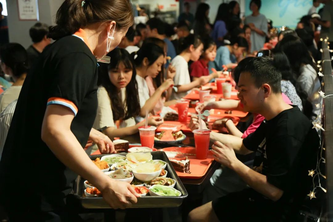 重庆移通学院合川校区南北区共有三个食堂:文峰食堂、三江食堂、北苑食堂,每个食堂都有多层楼开放,菜品丰富新鲜,“花样”百出,能满足来自天南海北移通er的各种口味需求。