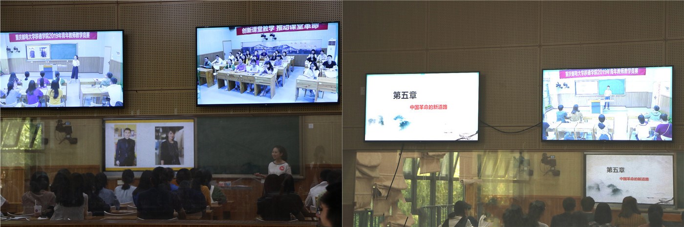 本次竞赛以“创新课堂教学,推动课堂革命”为主题,教学竞赛由教学设计、课堂教学与教学反思三部分组成,在评审过程中,采取“校外专家评审+校内专家评审+学生评审”的方式,评委主要从课堂教学内容、教学组织(含教学方法与手段、教学能力)、教学语言和教态、教学特色等方面进行考评。今年的一大特色就是学校加大“智慧课堂”的建设,所有参赛教师课堂教学环节都在爱莲阁录播教室进行,录播系统可以对教师的教学过程进行全面记录,同时通过三块LED显示屏将高清的录制画质展现给现场评委,真实还原课程教学,同步音质,实现教育信息化。录播系统可以作为精品课程建设的重要手段,是有效提升教学质量的有力工具。竞赛现场,参赛老师各展所长,讲课条理清晰,课件新颖生动,内容各具特色,在短短15分钟时间内,充分展示了各自的教学特点和教学风格。