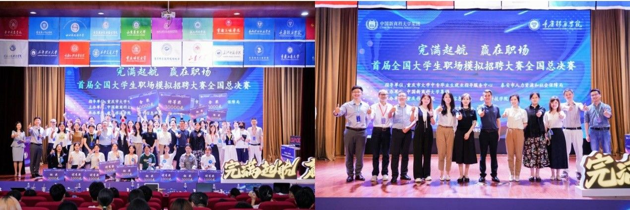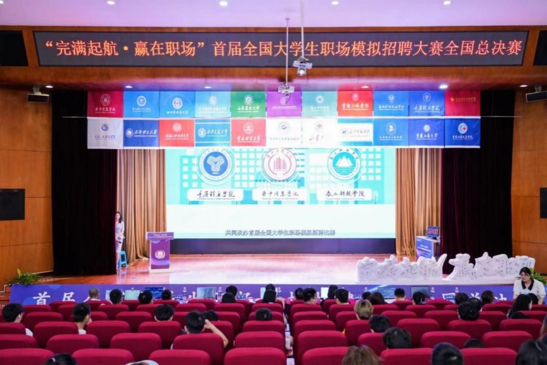 为深入贯彻党中央、国务院、教育部关于促进大学生就业的相关工作要求与文件精神,助力全国大学生了解职场,适应职场,推动并实现毕业生更加充分和更高质量就业,由中国新商科大学集团牵头主办,重庆移通学院、晋中信息学院、泰山科技学院共同承办的“完满起航·赢在职场”首届全国大学生职场模拟招聘大赛自2023年2月启动,经过校级比赛、片区初赛、片区复赛,迎来全国总决赛。5月31日,来自全国8个省市,22所高校,共计30名选手会师重庆移通学院。我校校长张德民教授,副校长、党委副书记周伟,中国新商科大学教育集团就创板块负责人、重庆移通学院校长助理陈仲华,晋中信息学院校长助理杨碧霞,泰山科技学院校长助理丁海奎莅临比赛现场。