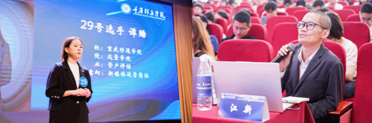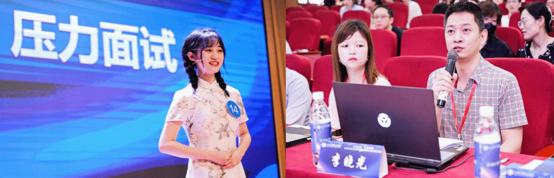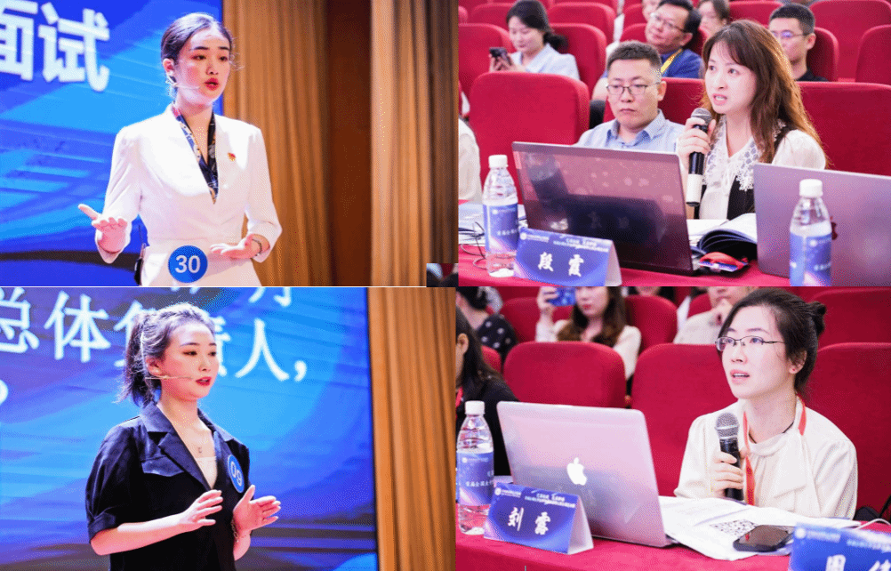 “自我介绍、职场模拟及压力面试”环节,30位参赛选手通过VCR进行自我展示,参赛选手现场抽取职场模拟测评题并进行90秒的作答,评委对参赛选手进行压力面试,参赛选手从容不迫、自信大方地应对各种问题,力求充分展现出自己的个人能力。