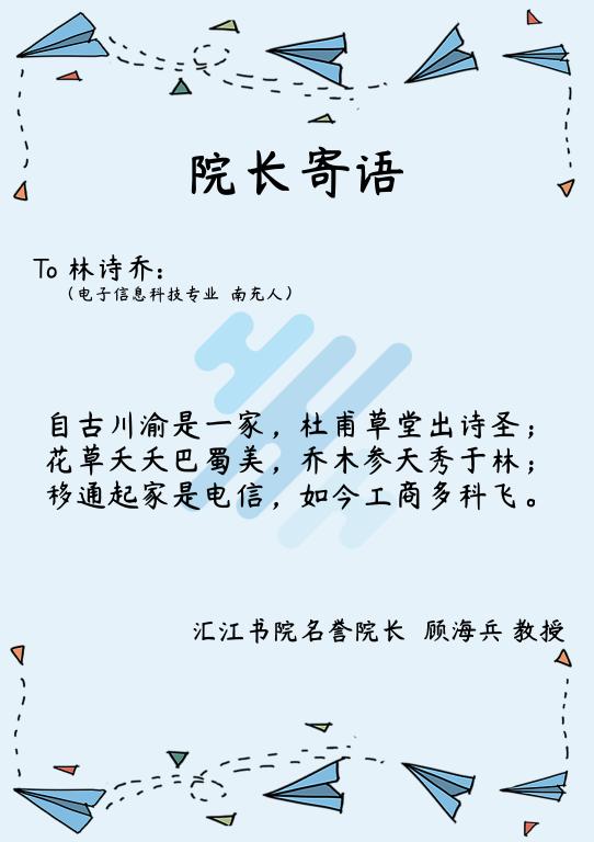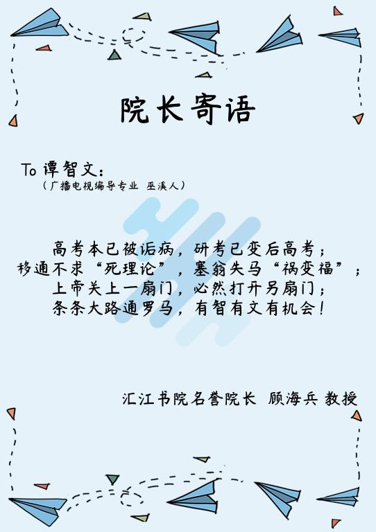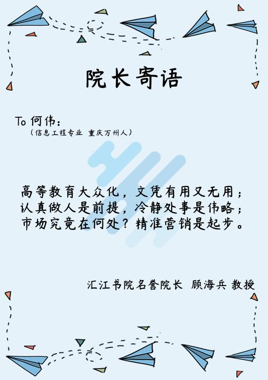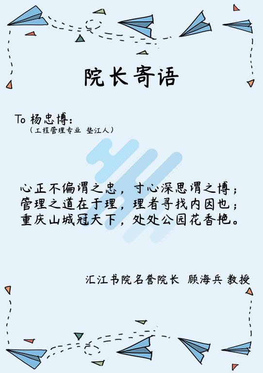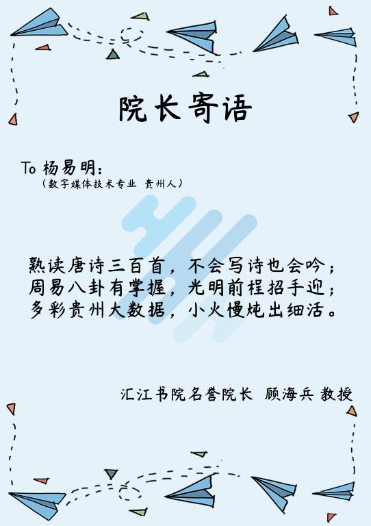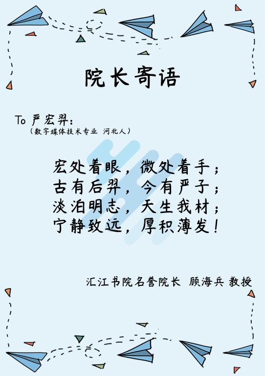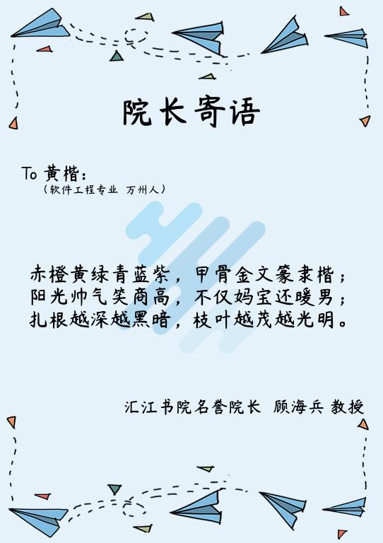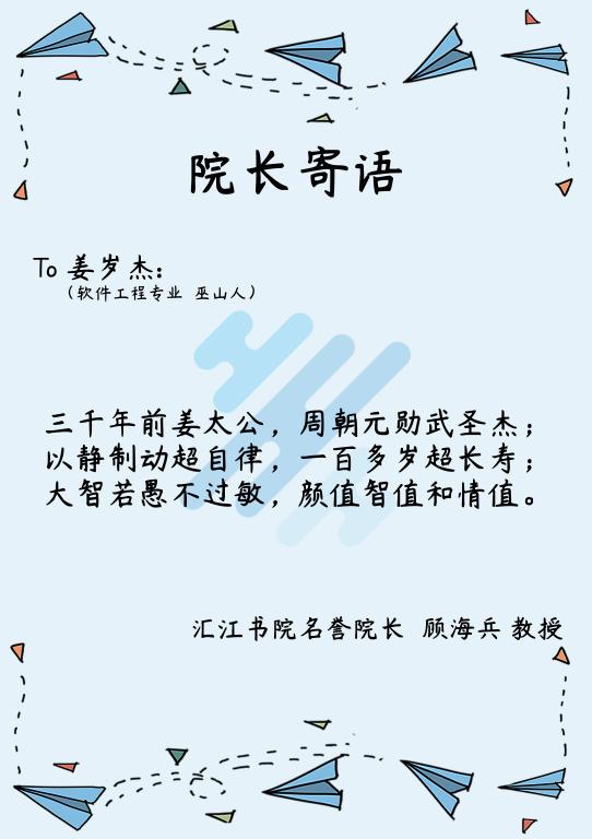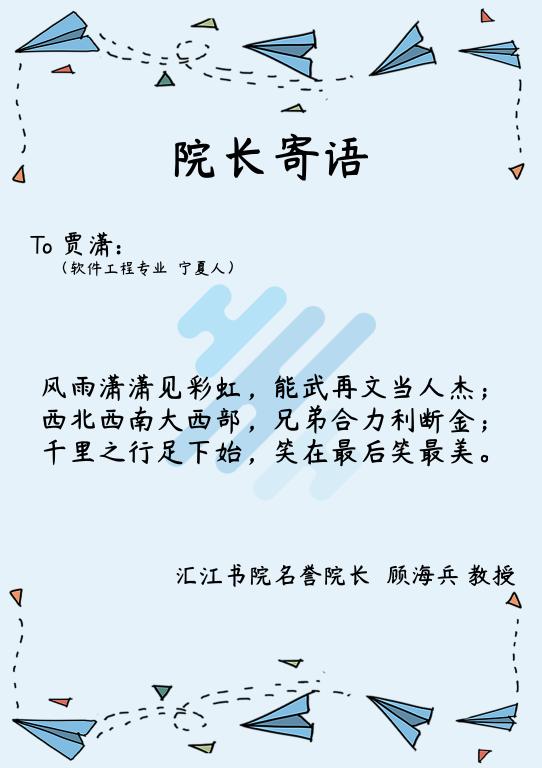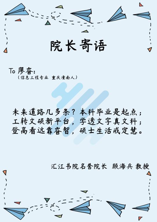 每一个学子都是有着独特的“灵魂”,师者们亲自执笔,字字入耳、句句入心的话语,是对毕业生们难以分割的情感,也是对不同人生的美好祈愿。回望四年光阴,师生间的每一次陪伴与交织,都是思想的碰撞,更是塑造个性的奇妙“旅程”……当下,唯愿你们鹏程万里,熠熠生辉!