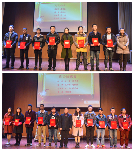 2016的尾声已经到来,2017的钟声即将敲响。回首过去的一年,我们收获了弥足珍贵的记忆珍藏,为表彰记录每一个感动瞬间的宣传者,2016年度“校园十大新闻”揭晓暨宣传先进集体、个人颁奖典礼于12月29日19:00在下里巴人如期举行。院长张德民教授、副院长王征、集团人力资源总监刘绍友、院长助理周伟以及相关职能部门负责人和师生代表出席了典礼。