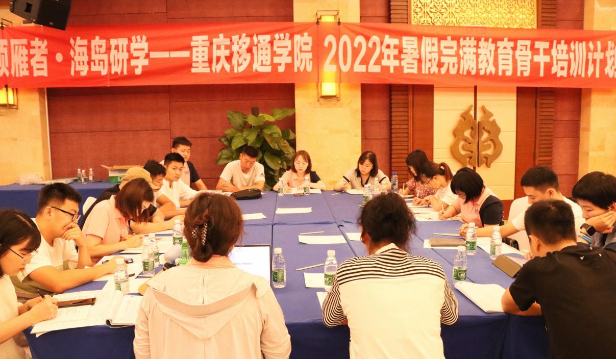 海风和煦,阳光悠悠,椰林摇曳。为进一步深度、全面探讨完满教育未来发展,切实提升完满教育队伍的工作水平,共谋完满教育工作的长足发展、极致化发展,为学生的全面发展、个性发展、健康发展、可持续发展夯实基础,7月12日至17日,来自重庆移通学院完满教育系统百余名骨干教师,相聚海南·三亚,参加“领雁者·海岛研学计划——重庆移通学院2022年暑期完满教育骨干培训计划”。