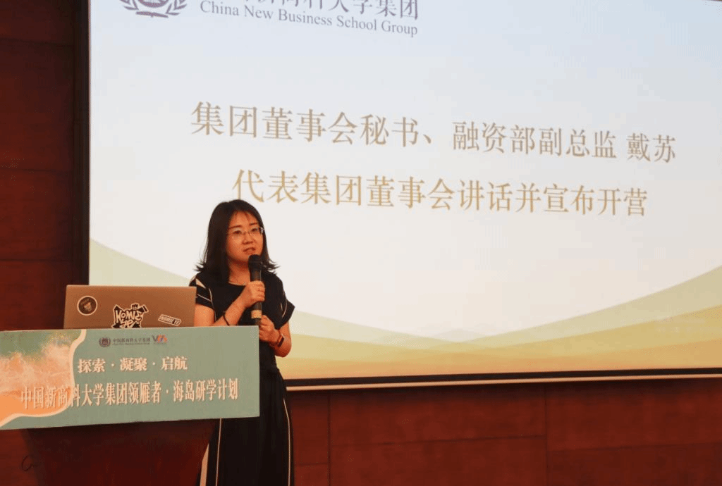 集团董事会秘书、融资部副总监戴苏老师代表集团董事会讲话并宣布开营,同时希望大家在研学与培训活动中实现理论和综合素质的双提升。