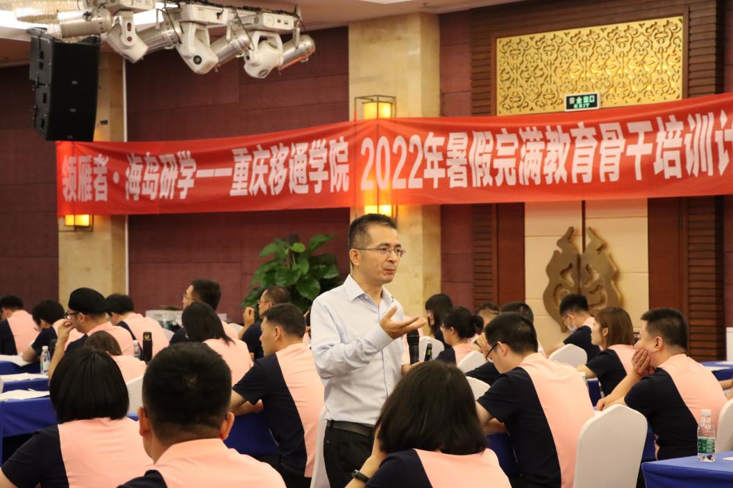 7月12日8:30,重庆移通学院副校长李文豹主持开幕式并介绍整体培训安排,他表示本次培训为探索性的异地举办并首次以“学主从游”安排多个培训项目和类别,他强调,大家在培训期间体会天海人三位一体的和谐相融的同时也希望大家在分享、交流、研讨的时光里可以有所收获,为我们共同的完满教育事业建言献策。