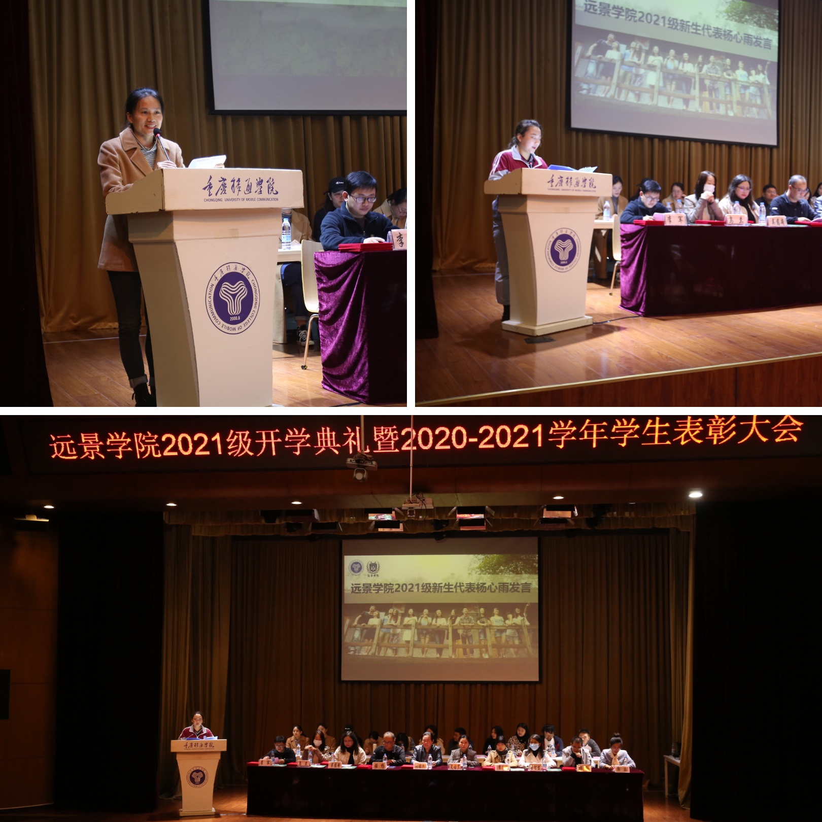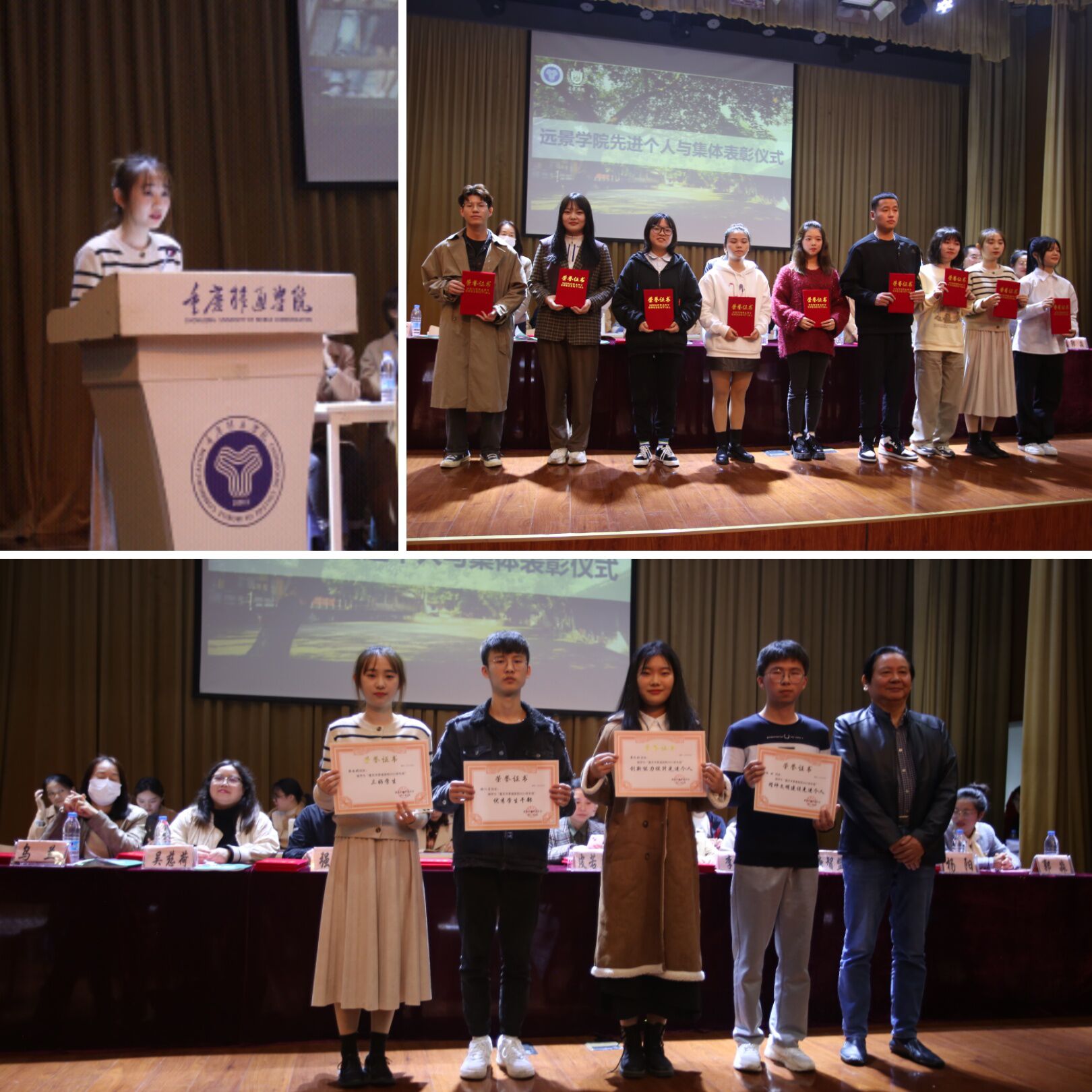 本次大会不仅是欢迎新同学的大会,同时也是表彰先进,树立榜样的盛会。集中表彰了远景学院2020—2021学年的各类先进个人与优秀集体,同时对远景学院上一学年的各类学科竞赛中表现突出的同学予以表彰。张德民校长为获得重庆市先进个人与先进集体颁奖,与会领导为获得学校先进个人与先进集体、获得国家级、省部级学科竞赛先进个人颁发了奖状。鼓励同学们在新的一年再接再厉继续创造辉煌。