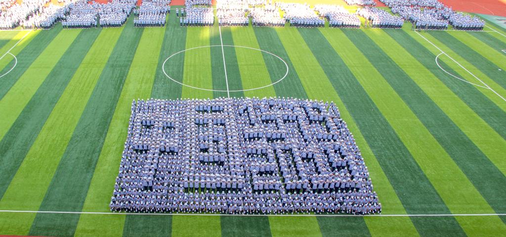 绿茵场上洋溢着青春与活力,新生们身穿整洁的戎装,站着标准的军姿,昂首挺胸,目光如炬,朝气蓬勃,等待着主席台的检阅。“我们已集合完毕,请检阅!”校长张德民在2019级新生军训团团长吴清海的陪同下检阅了军训团,经过两周的磨练,新生们伫立在方阵中,更显得身姿挺拔。“同学们好!”同学们辛苦了!”面对张校长的问候,新生们回答得洪亮又有力:“校长好!”“为校争光!”。