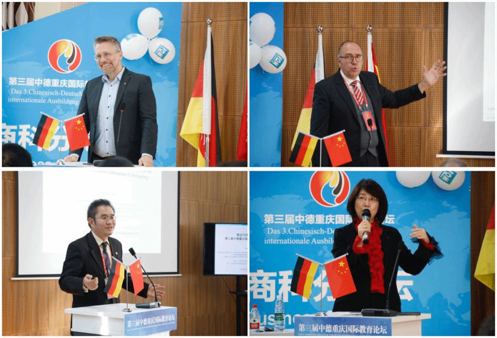 为提升学校“信息产业商学院”的办学品质,进一步推进我校与国外高校的合作办学,优化我校商科课程模块化建设,培养造就高素质的国际化商业领导人才,10月28日下午,在第三届中德重庆国际教育论坛第四分会场—“新商业·新商科·新文明”主题分论坛上,我校国际商学院(FBS)正式宣布成立。同时,德国课程体系研究中心和国际商学院专家委员会也正式揭牌。德中教育文化交流协会会长陈晓莉、我校校长张德民教授、德国FOM大学校长Beschoner 博士、埃森市科学之城委员会主席 Stefan Heinemann教授等领导和嘉宾出席活动。本次分论坛由校长助理孙玺主持。