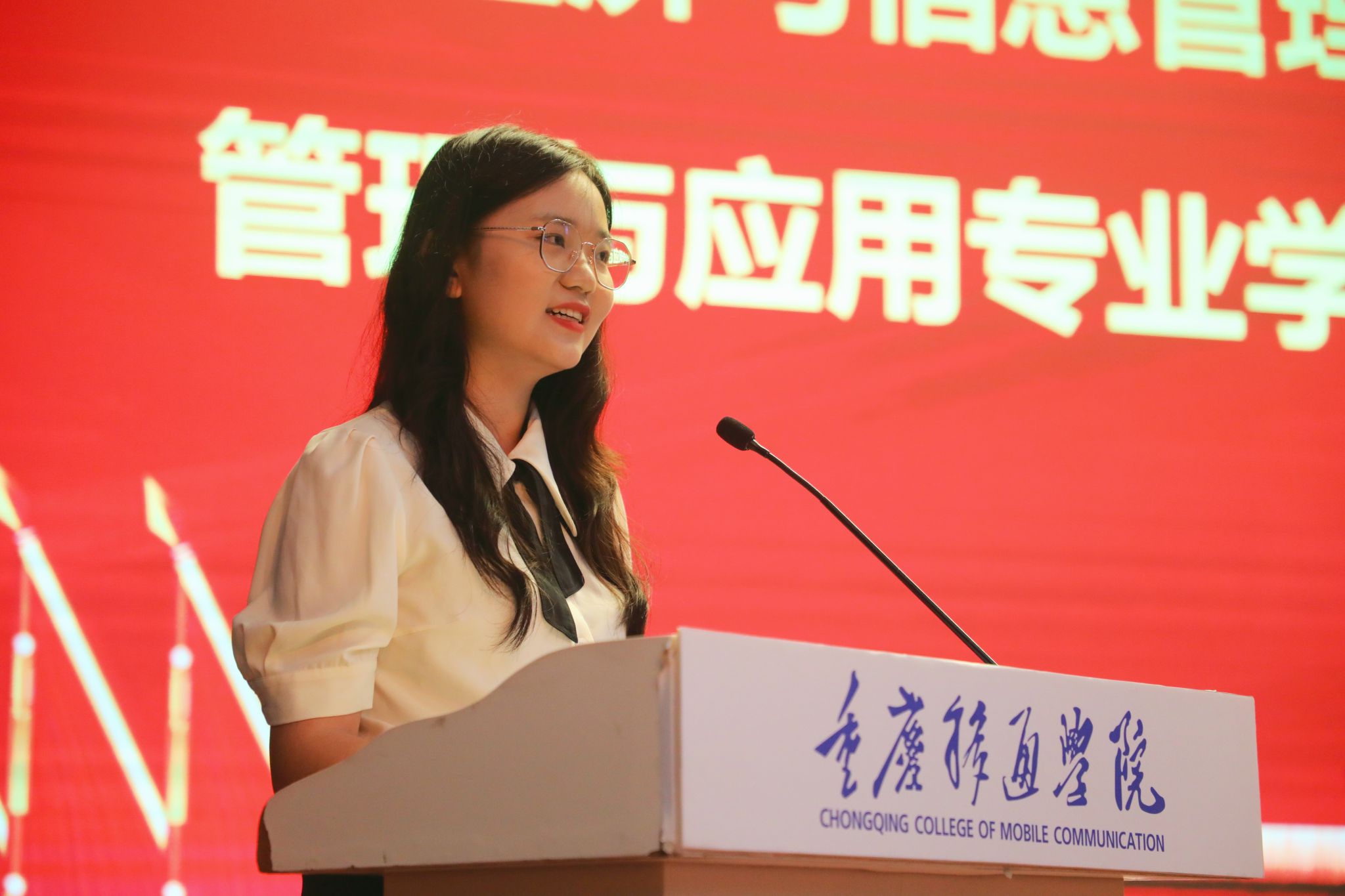 数字经济与信息管理学院2022级大数据管理与应用专业学生廖晨呈同志作为优秀学生党员代表发言,她从坚定理想信念,树立党员形象;勇于开拓创新,做好标杆榜样;保持优良作风,积极服务社会等三个方面总结了这一年度的表现,同时也表示在在今后的学习、工作、生活中更加充分地发挥先锋模范作用,以自己的实际行动,践行中共党员的义务和使命。