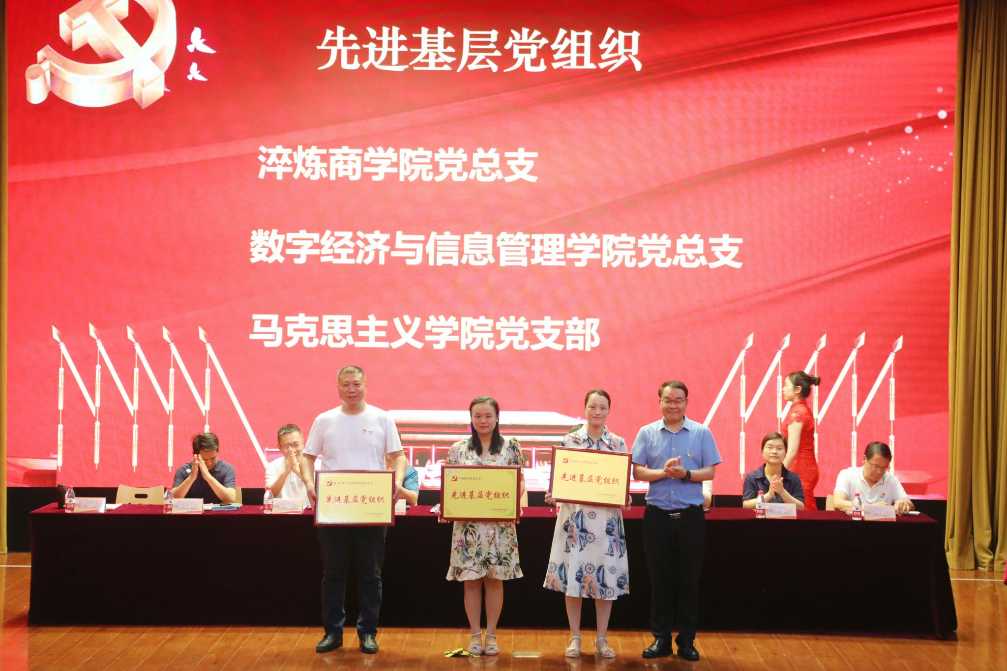 为庆祝中国共产党成立102周年,深入学习贯实习近平新时代中国特色社会主义思想和党的二十大精神,6月27日下午,我校庆祝建党102周年暨“七一”表彰大会在下里巴人剧场隆重举行。大会表彰了2022-2023学年先进基层党组织、先进基层党支部、优秀党务工作者和优秀共产党员,激励全校党组织和广大师生党员进一步解放思想、锐意进取、真抓实干,牢记党员身份,争做“六有”大学生,做“四有”好教师,并着力推动学校各项工作持续发展。