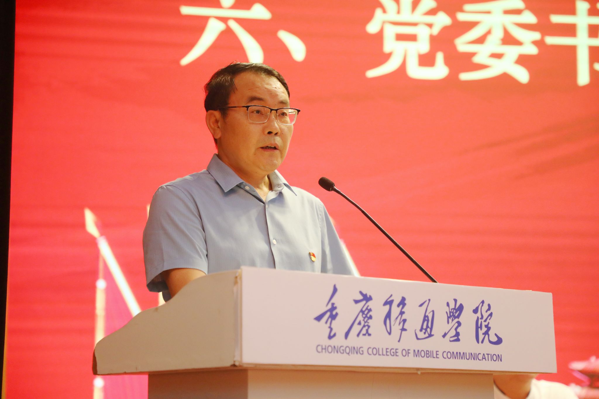 党委书记何先刚同志在大会上发表讲话。他向全校党员致以亲切的问候,向受到表彰的先进党支部和优秀个人表示热烈的祝贺,并号召全校师生员工以他们为榜样,倾心育人事业,矢志岗位建功。校党委围绕学校发展大局和中心工作紧抓党建工作不放松,不断提高党建工作水平,切实增强了学校各级党组织和党员队伍的凝聚力、战斗力,有力保障和推动了学校各项事业健康发展,实现了学校人才培育质量、社会服务实力和整体办学水平的大步提升。同时对在校园疫情爆发时期,向投身抗疫一线的党员志愿者们表示感谢!同时,何书记指出,在未来的工作中,学校党委、学校各级党组织和广大党员一是要牢记党员身份,坚定理想信念,胸怀强烈的使命意识,肩负起实现中华民族伟大复兴的历史使命,在不同历史阶段都出色地履行使命担当。二要加强党性修养,践行责任担当,作为党员,特别是党员领导干部要旗帜鲜明地讲政治,要有担当责任的使命、脚踏实地的作风、开拓创新的能力。三是要坚持服务师生,聚力攻坚克难,坚持靶向思维,深入践行以师生发展为中心的发展思想,不断促进学校治理体系和治理能力现代化。