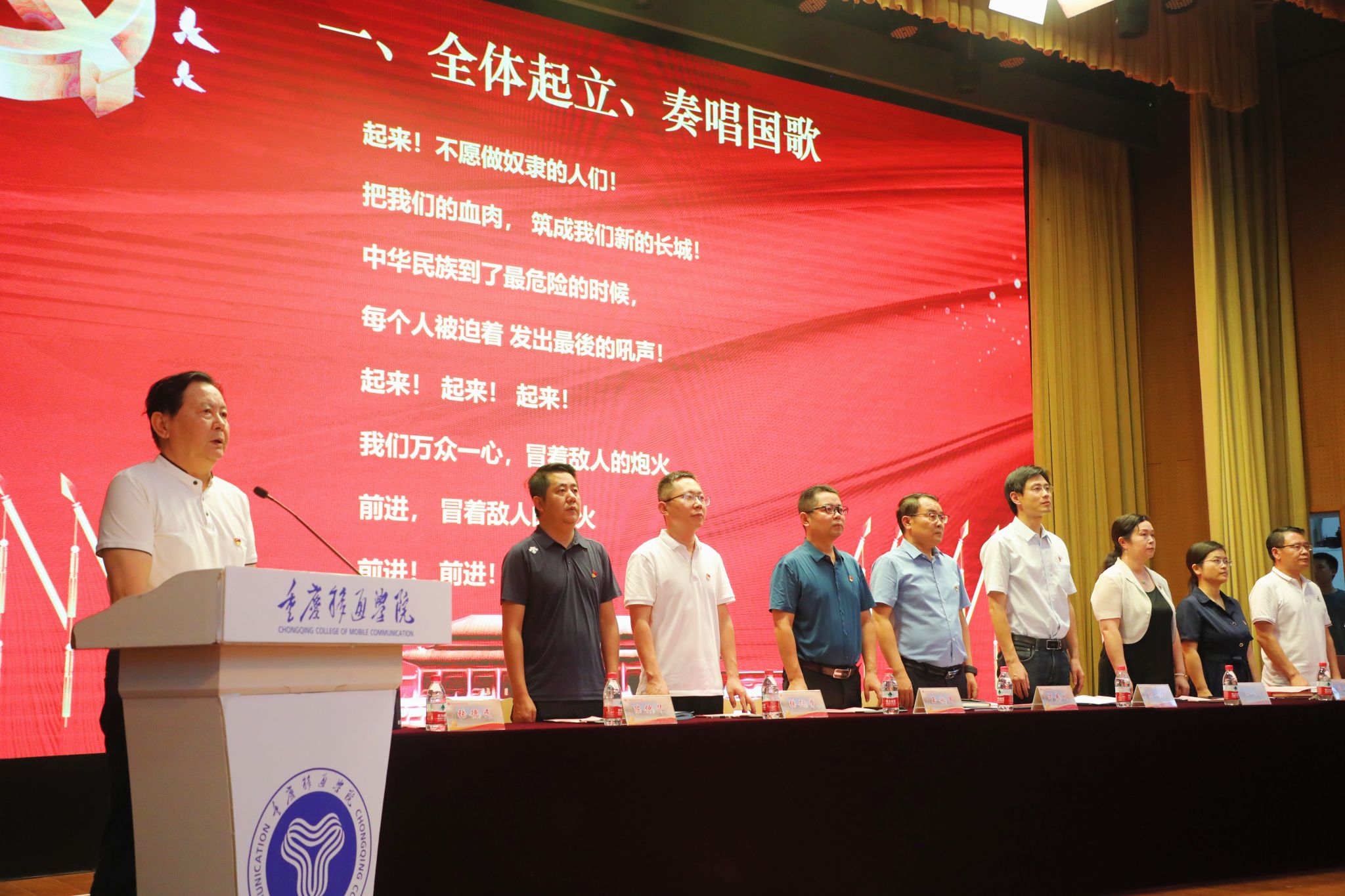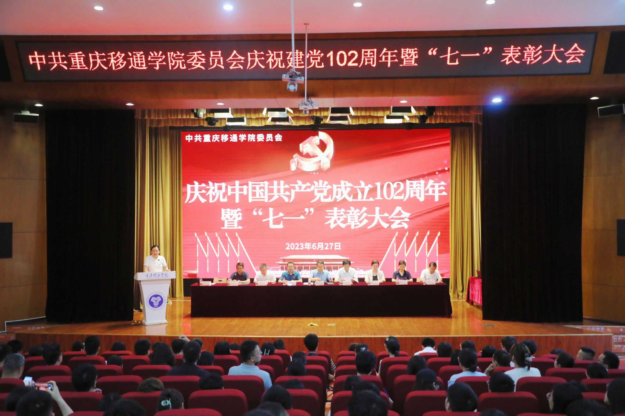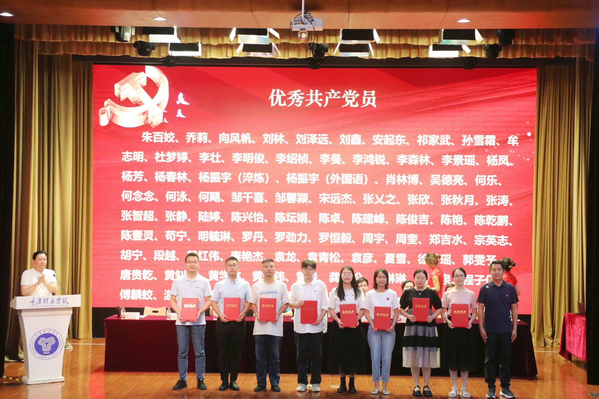 大会在庄严的国歌声中拉开序幕。党委委员、副校长张衍学同志带领新党员宣誓、老党员重温入党誓词。党委副书记、副校长周伟同志宣读《中共重庆移通学院委员会关于表彰2023年先进基层党组织、优秀党务工作者和优秀共产党员的决定》。在振奋人心的音乐中,党委书记何先刚,党委委员、綦江校区党委书记、常务副校长、綦江管委会主任王永周,党委委员、副校长孙玺,党委委员、校长助理刘枚,校长助理陈仲华为先进基层党组织、先进基层党支部、优秀党务工作者和优秀共产党员颁发荣誉证和奖牌。